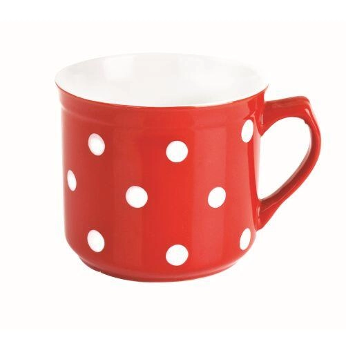 Štýlový retro hrnček s objemom 660 ml v červenej farbe s bielymi bodkami poteší malých aj veľkých. Je ideálny na každodenné používanie – na teplé kakao, čaj aj kávu. Jednoduchá údržba vďaka možnosti umývania v umývačke a bezpečné používanie v mikrovlnnej rúre.