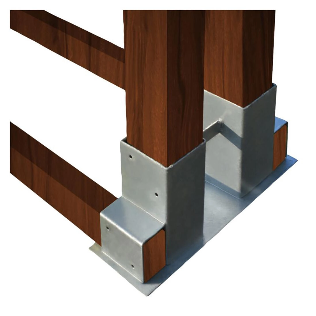 Montáž je rýchla a flexibilná – stačí zasunúť drevené hranoly do otvorov a zvoliť dĺžku podľa potreby. Drevené spojnice a bočnice nie sú súčasťou balenia (ilustračné). Pre kompletný rám je nutné použiť aspoň dva kusy stojanov.