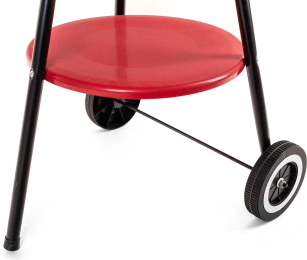 Vďaka plastovým kolieskam a prednému madlu gril ľahko presuniete na záhrade či na chate. Spodná odkladacia polica poskytne priestor na uhlie, náradie alebo koreniny, takže budete mať všetko po ruke.