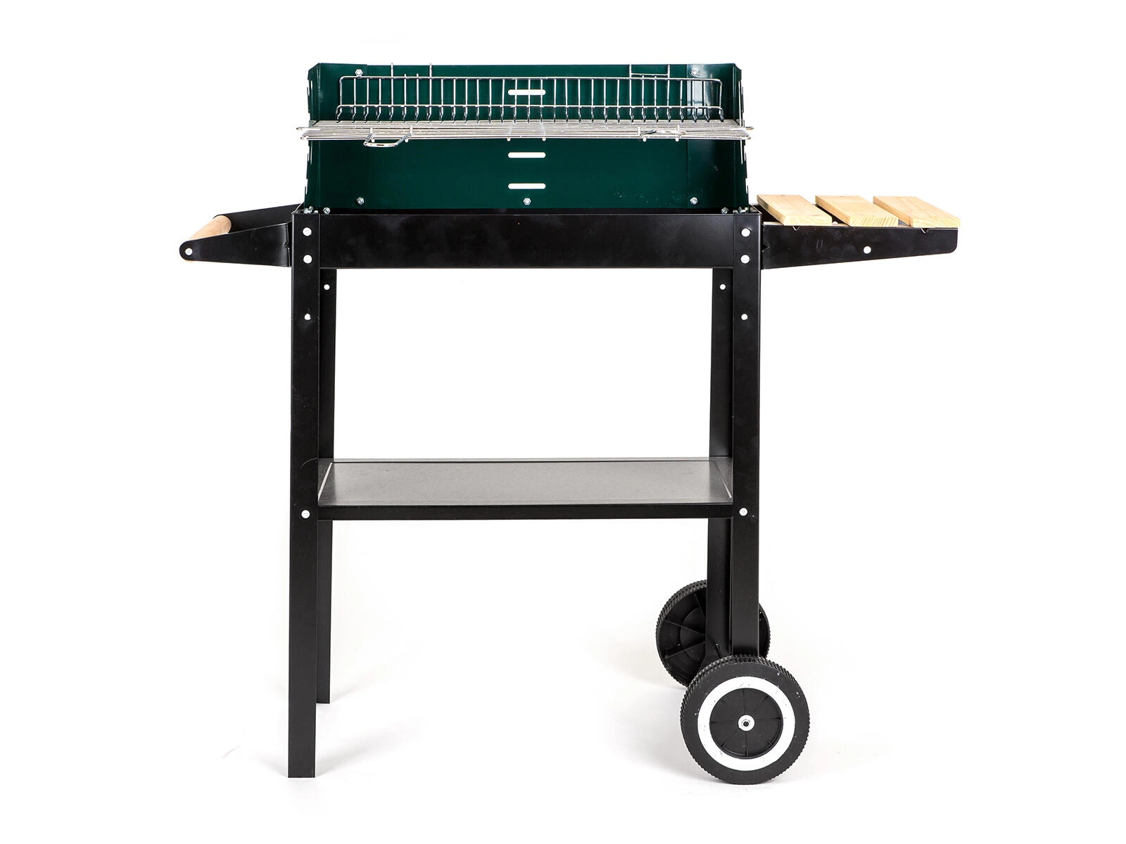 Integrované pojazdové kolesá umožnia rýchle premiestnenie grilu na terase či v záhrade bez námahy.