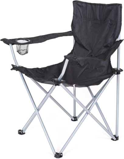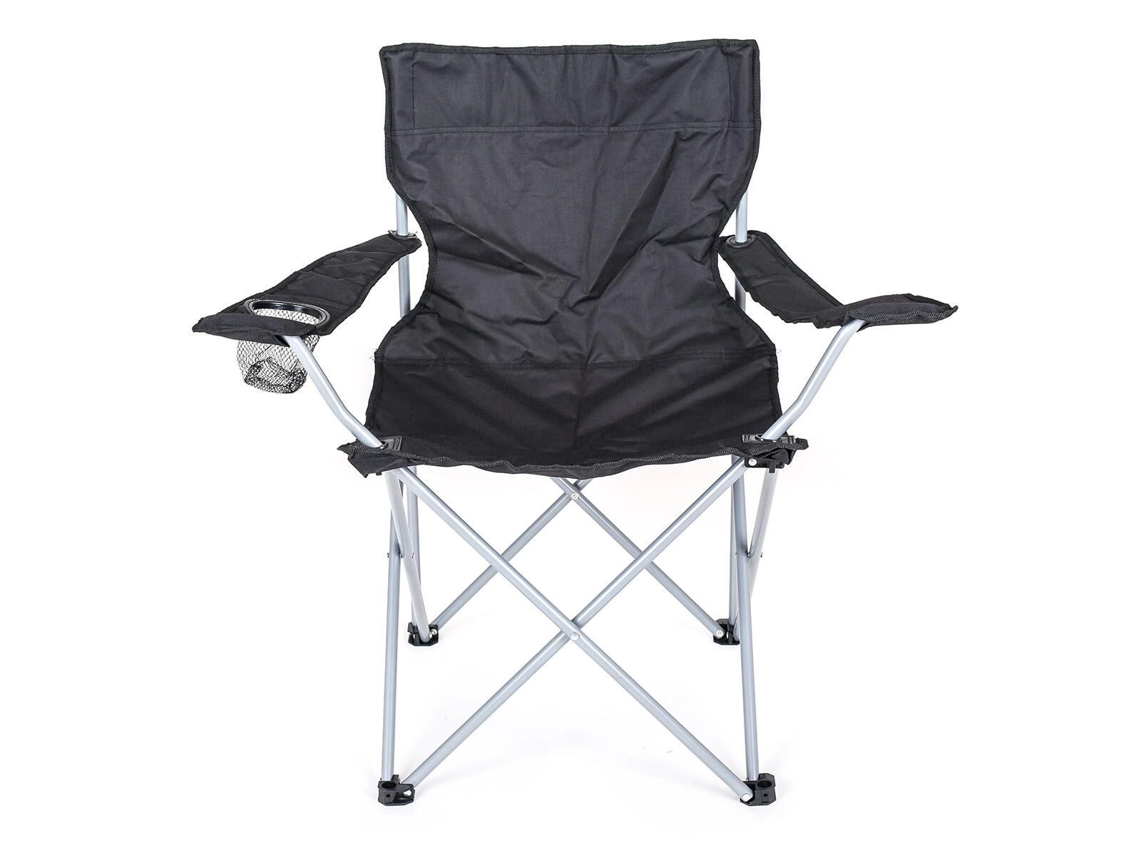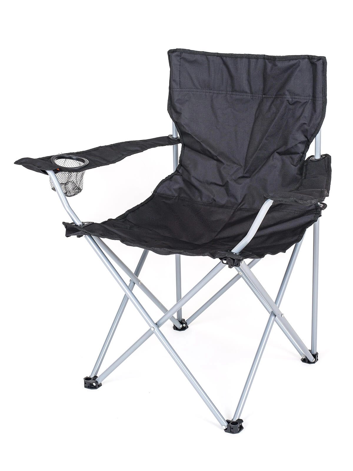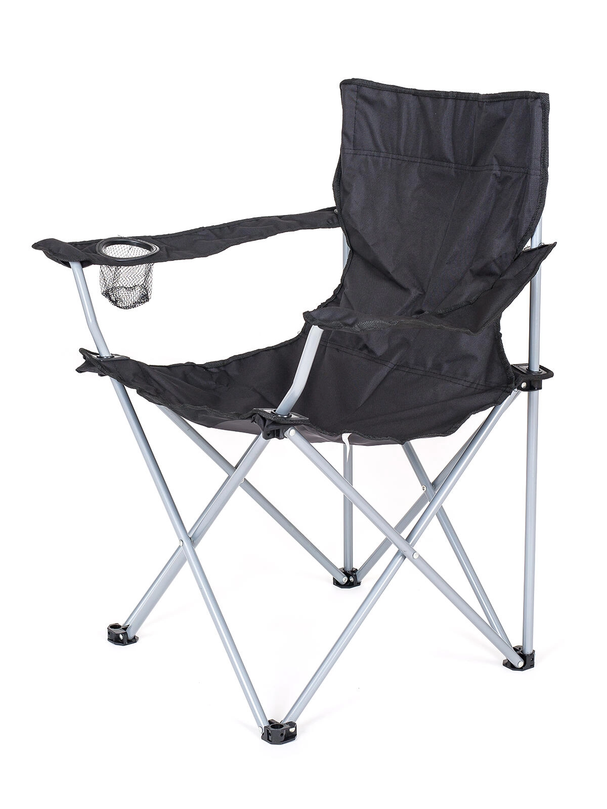 Ľahké a odolné skladacie kempingové kreslo FISH v čiernej farbe ponúkne pohodlné sedenie s podrúčkami a praktickým držiakom nápoja. Vďaka oceľovej konštrukcii a poťahu z 600D polyesteru s PVC povrchom je stabilné, ľahko prenosné a rýchlo zložiteľné. Ideálne na ryby, do kempu, na chatu aj festivaly.