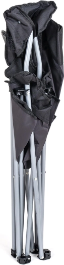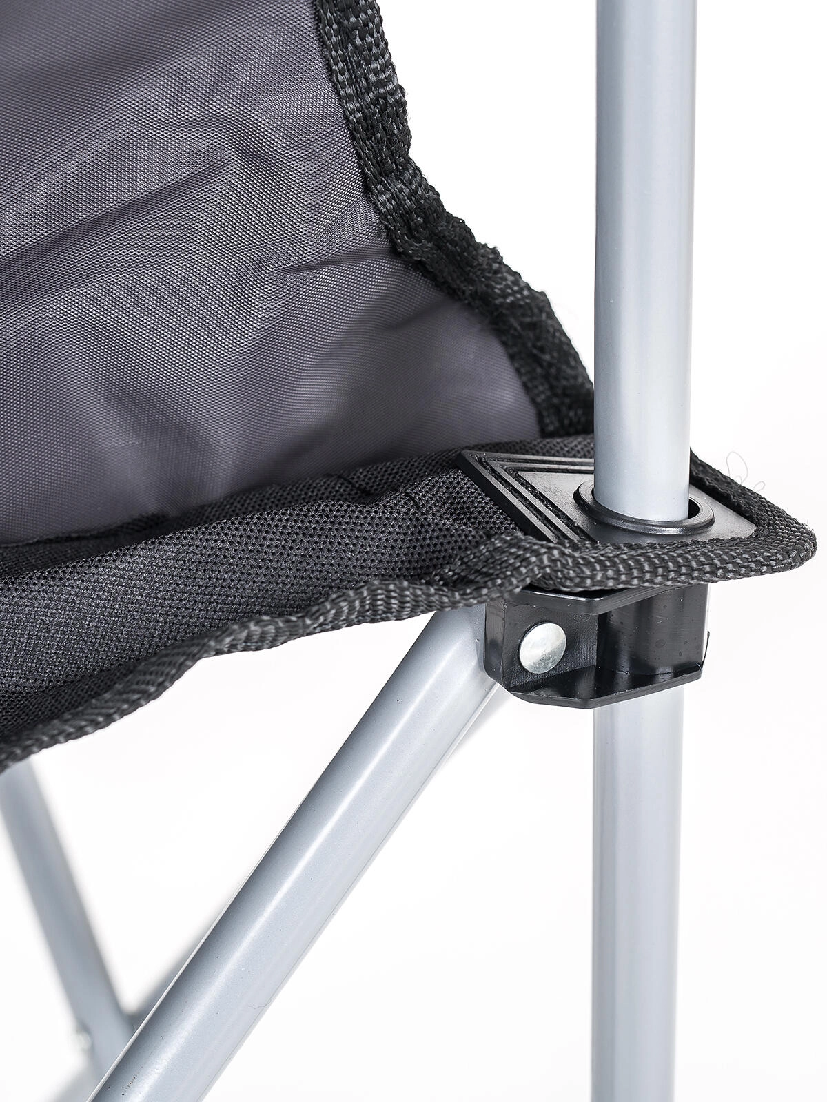 Kreslo má pohodlné podrúčky, jedna z nich je vybavená integrovaným držiakom nápoja. Vďaka kompaktným rozmerom po zložení sa ľahko zmestí do priloženého transportného obalu a nezaberie miesto v aute ani v garáži.