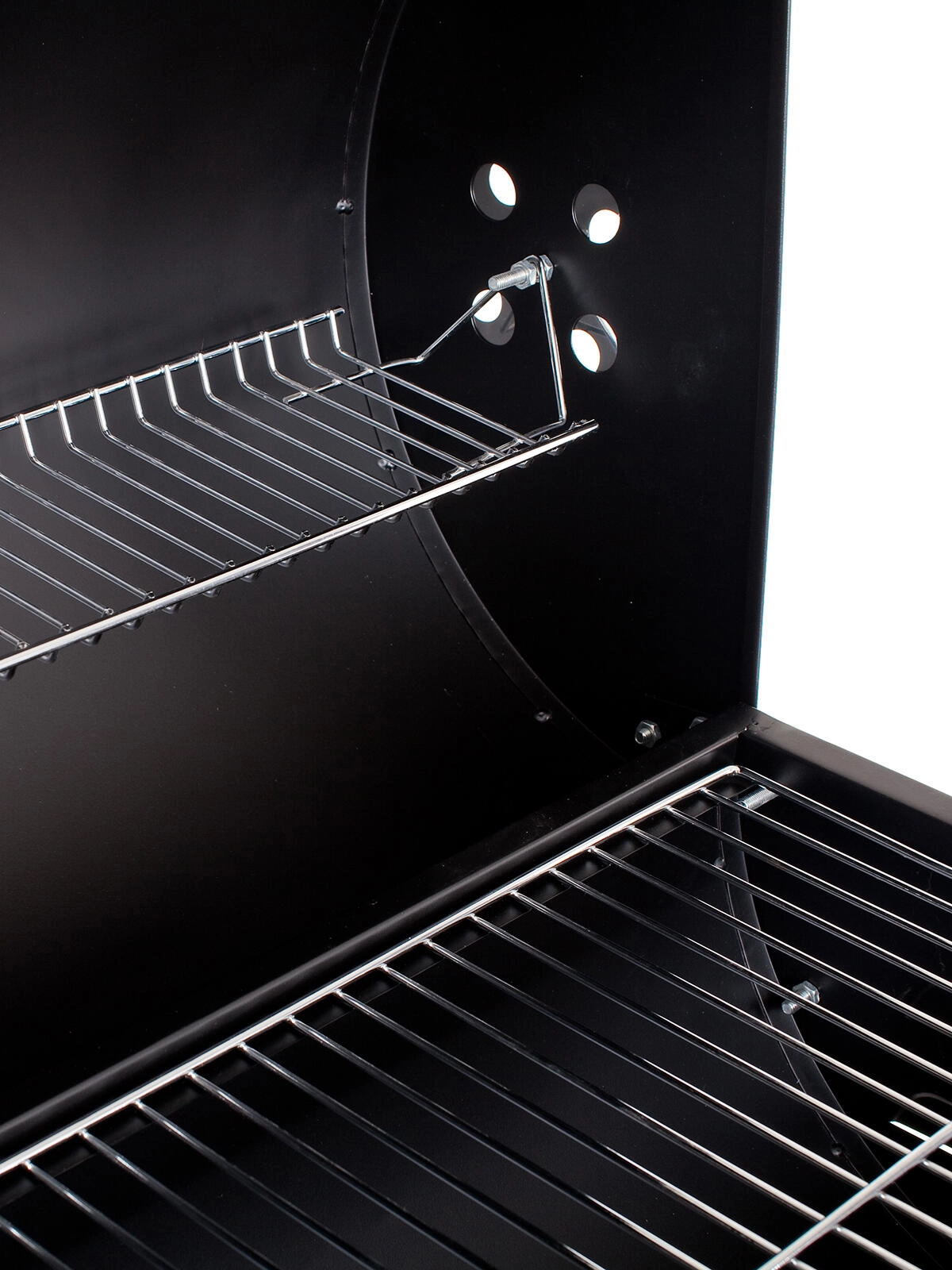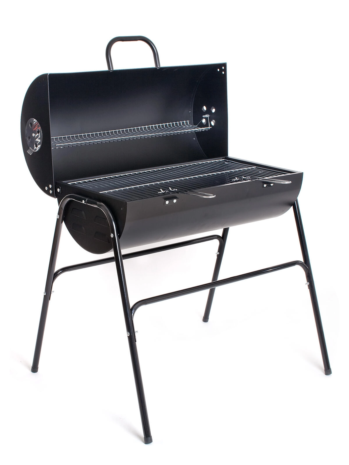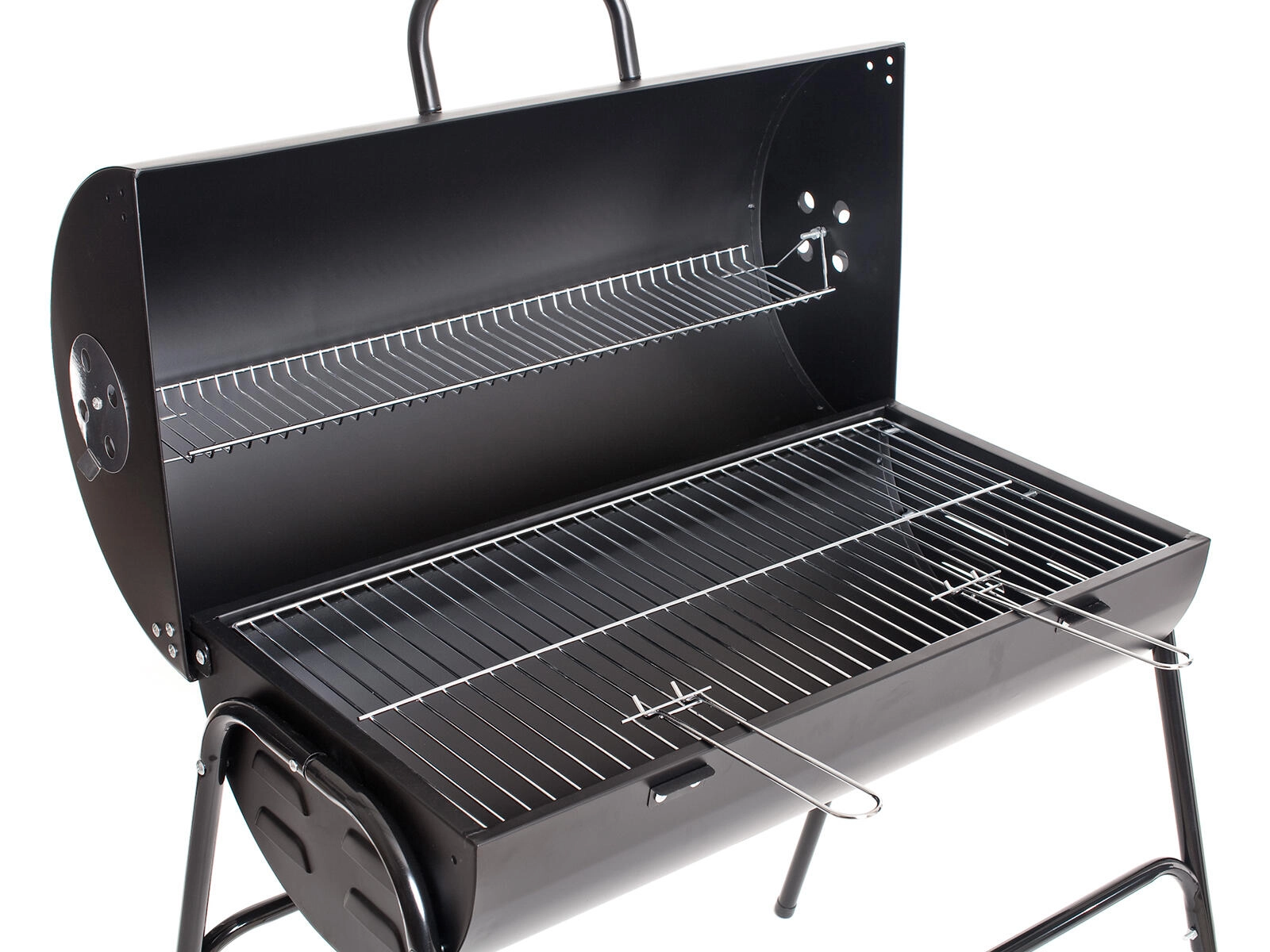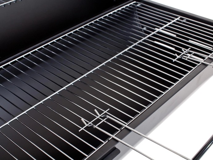 Rancher je spoľahlivý uhlíkový oceľový gril s vekom, ktorý kombinuje priestrannosť a odolnosť. Dva pochromované rošty – hlavný grilovací a horný ohrievací – poskytujú flexibilitu pri príprave mäsa, zeleniny aj pečiva. Uzatvárateľné veko so zabudovaným teplomerom a bočnými prieduchmi umožňuje lepšiu kontrolu nad teplotou a prúdením vzduchu.