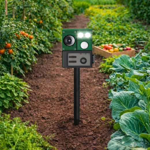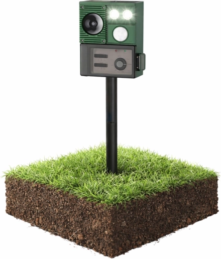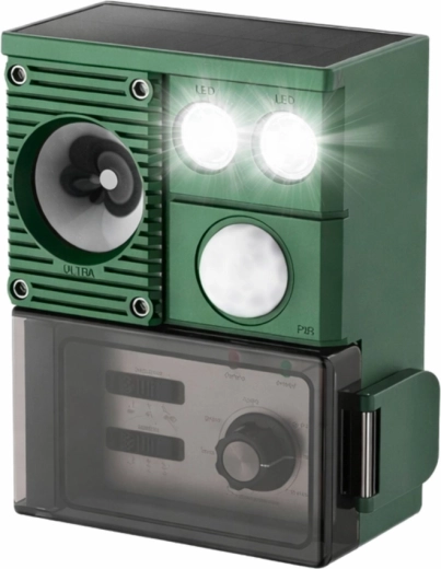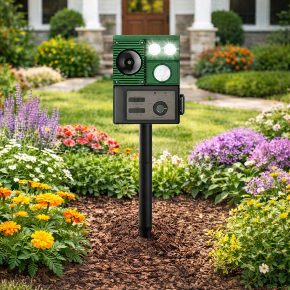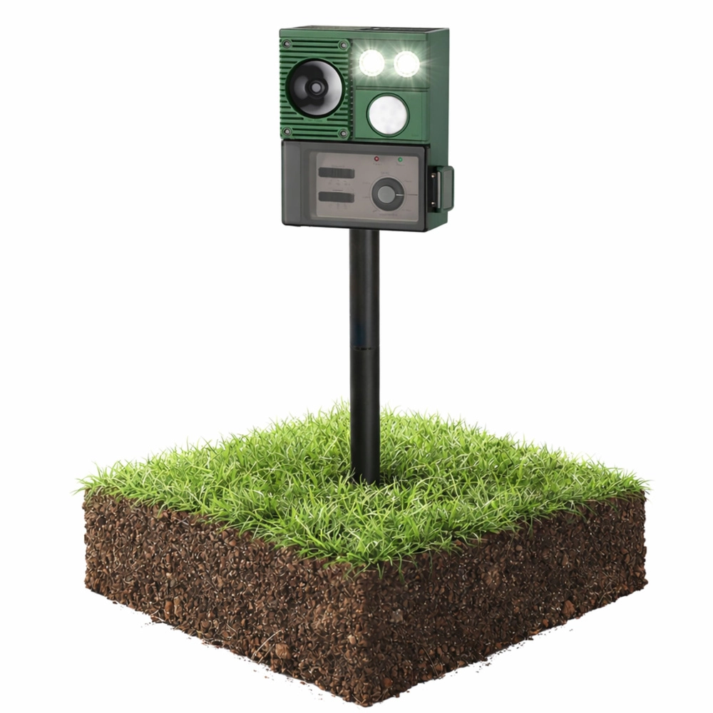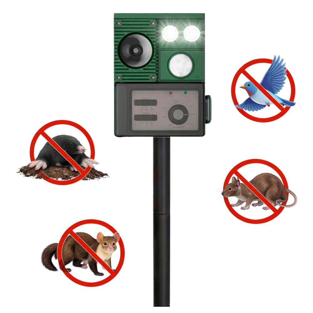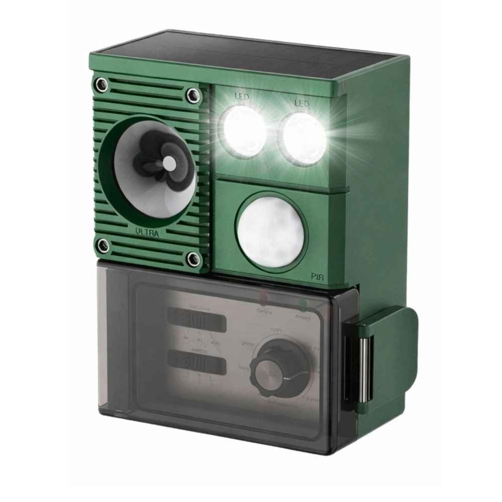 Moderný solárny odpudzovač zvierat je praktické riešenie na ochranu trávnikov, záhonov a úrody pred nepozvanými návštevníkmi. Zariadenie využíva kombináciu ultrazvuku, zvukových signálov a PIR senzora, ktorý spustí odpudzovanie iba pri zachytení pohybu. LED svetlá posilňujú účinok najmä po zotmení.