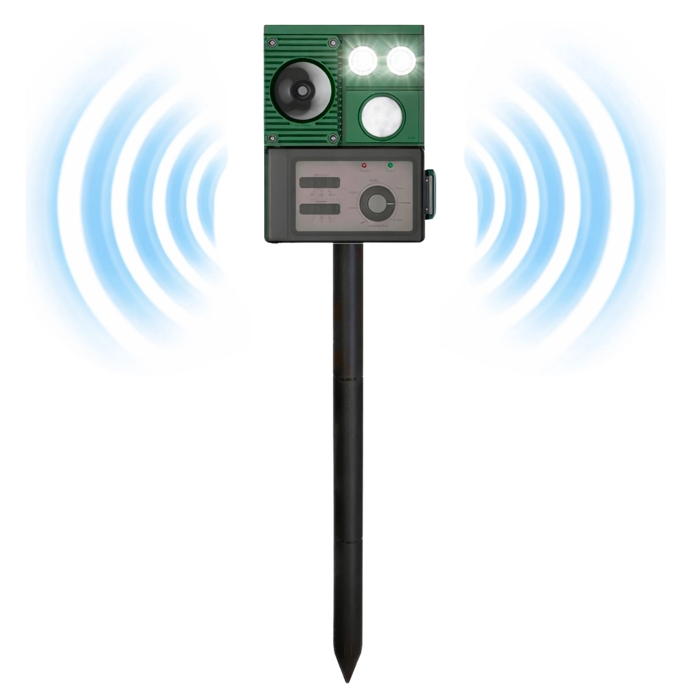 Vstavaný solárny panel priebežne dobíja batériu počas dňa, takže prevádzka je pohodlná a bez nutnosti výmeny batérií. Vďaka nastaveniu citlivosti a frekvencie ultrazvuku jednoducho prispôsobíte účinok rôznym druhom zvierat aj podmienkam prostredia. Odolné prevedenie a zemný hrot umožňujú rýchle umiestnenie do pôdy.