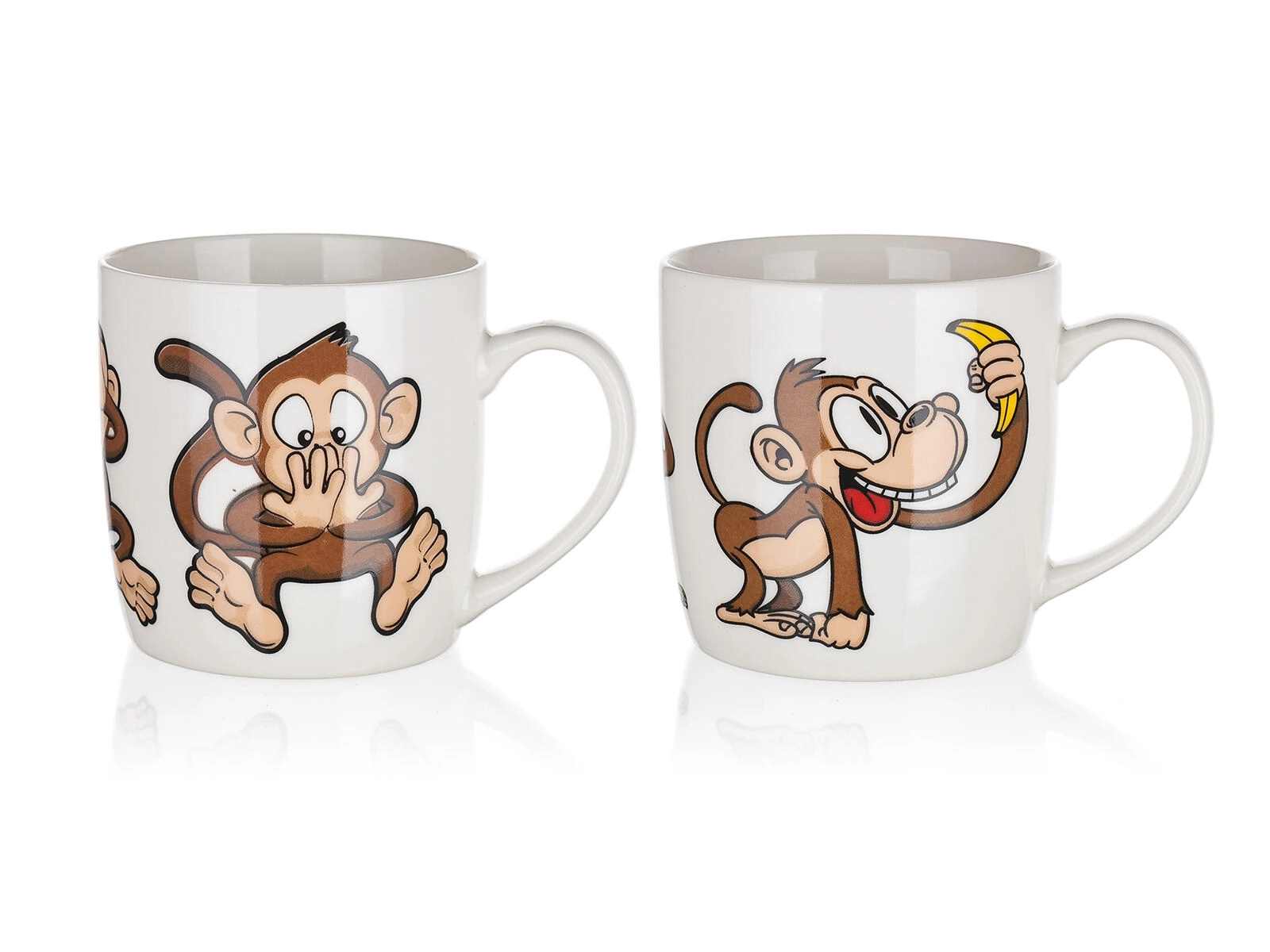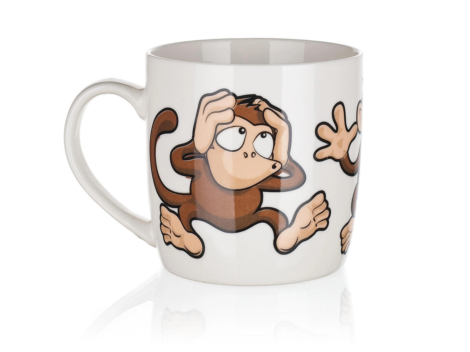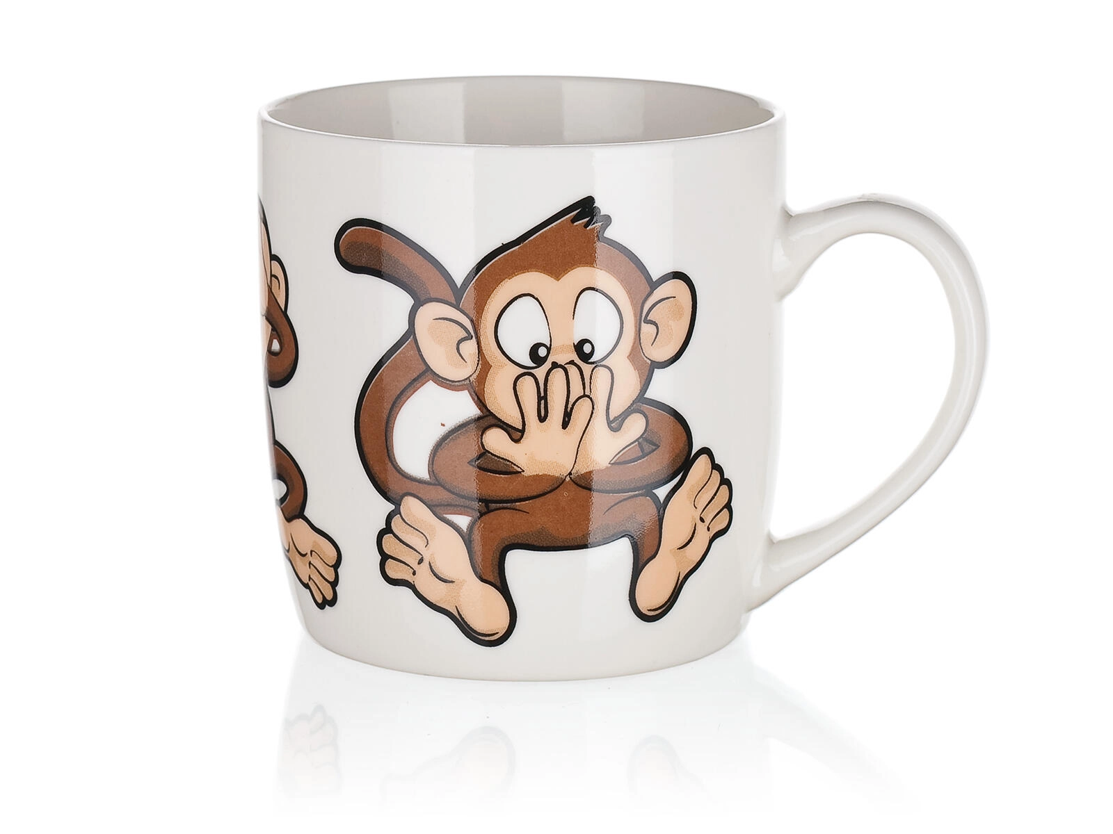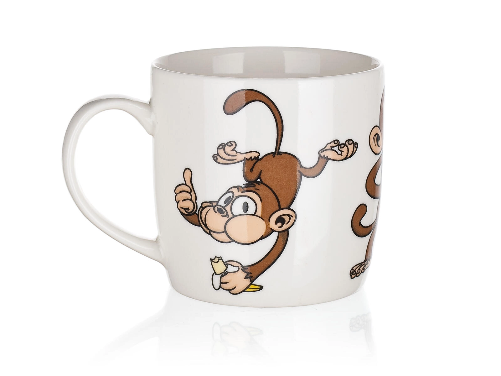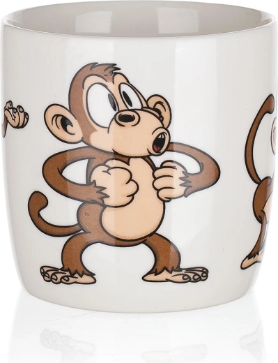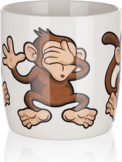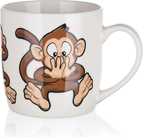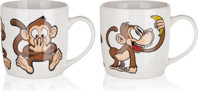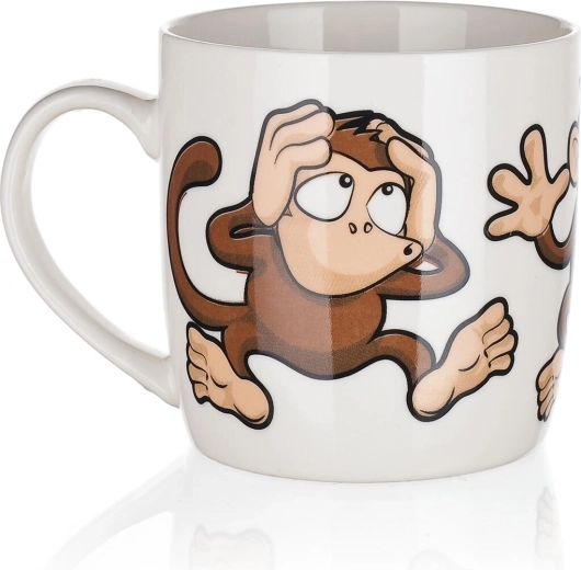 Roztomilý keramický hrnček s objemom 320 ml s hravým motívom opičiek poteší deti aj dospelých. Ideálny na každodenné používanie – na kávu, čaj či kakao. Vyberať môžete z mixu veselých dekorov, každý s lesklou glazúrou a pohodlným uchom. Vhodný na horúce aj studené nápoje a skvelý ako darček.