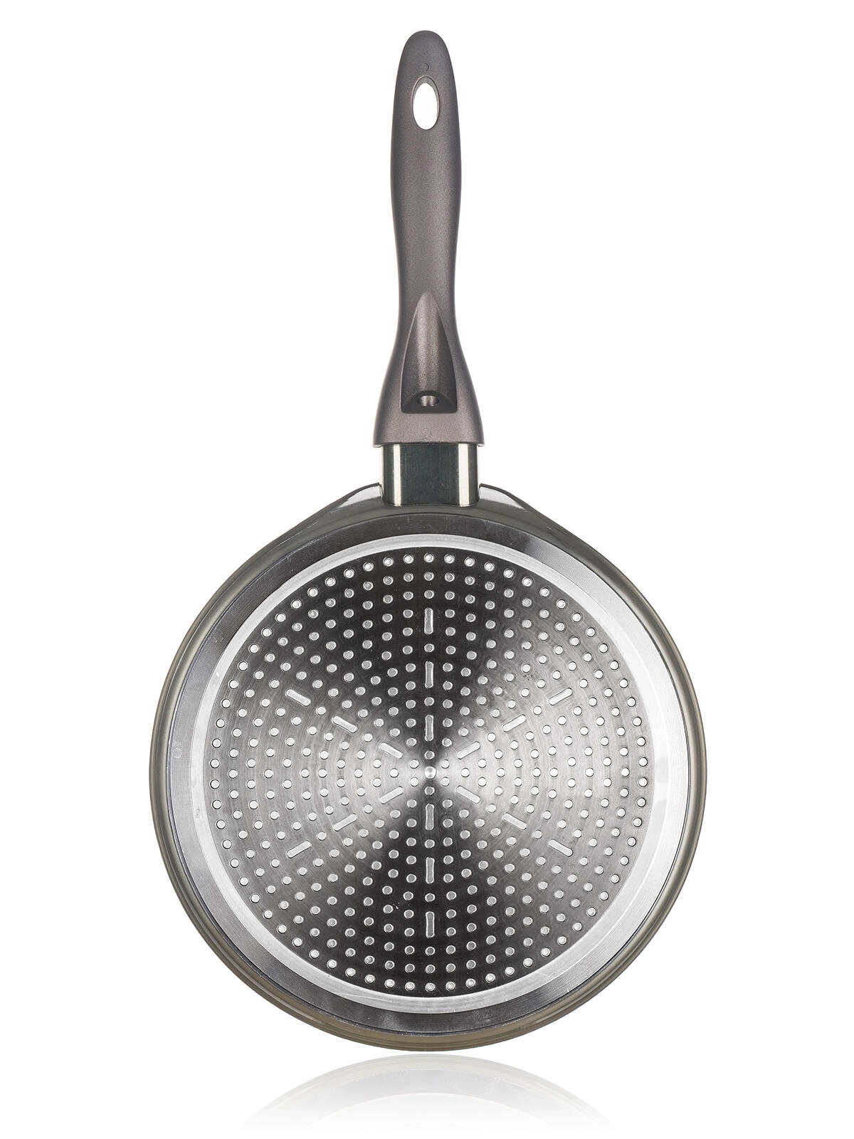 Ľahká a odolná panvica na palacinky METALLIC PLATINUM s priemerom 24 cm s vysoko nepriľnavým povrchom, plne indukčným dnom a ergonomickou soft‑touch rukoväťou. Vďaka rýchlemu a rovnomernému rozvodu tepla pripravíte palacinky, lievance či tortilly ľahko a bez pripaľovania.