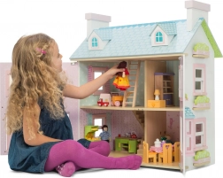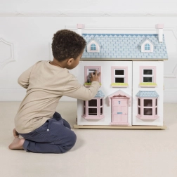 Luxusný trojposchodový ručne maľovaný drevený domček Mayberry Manor. Jednotlivé izby sú odlišne zdobené. Obsahuje schodisko prechádzajúce stredom domčeka. Izby sú oddelené priečnou stenou. Domček má funkčné otváracie okná, okenice a dvere. Domček je možné otvoriť z jednej strany. Strecha je z polovice odnímateľná a možno ju použiť ako predzáhradku, spodná strana strechy je vhodne ilustrovaná. Domček ponúka veľký priestor na hranie a rozvoj kreativity. Domček je určený pre bábiky do 15 cm. Nábytok do domčeka nie je súčasťou balenia, možno ho dokúpiť z našej ponuky rovnako ako bábiky a vonkajšie hracie prvky vrátane podložky. Vybavenie domčeka nie je súčasťou balenia. Domčeky Le Toy Van pre bábiky sú tvorené s láskou pre celoživotnú čarovnú hru. Používajú udržateľné postupy, etiku a vyrábajú krásne drevené hračky, ktoré dnes aj pre ďalšie generácie inšpirujú a rozvíjajú predstavivosť. Hlavné vlastnosti: Pomáha s rozvojom koordinácie pohybov, sociálnych zručností a rozvoja reči. Trojposchodový domček pre bábiky je možné dovybaviť nábytkom podľa vlastnej kreativity. Podporuje dlhodobú imaginatívnu hru. Zlepšuje koordináciu v zábavnom prostredí. Vyrobené eticky z udržateľného dreva. Rodovo neutrálne prevedenie nabáda k zdieľaniu medzi súrodencami. Dekorované netoxickými farbami, testované podľa najprísnejších štandardov. Kolekcia Daisylane. Prestížna kolekcia domčekov pre bábiky a doplnkov firmy Le Toy Van. Pred viac než 25 rokmi zakladateľ Georges navrhol svoj úplne prvý domček pre bábiky, stavebný kameň tejto firmy. Vyrobené eticky z udržateľných materiálov, drevené domčeky pre bábiky Daisylane sú jedinečné a nebudú detskú predstavivosť držať späť. Rodinné dedičstvo, skutočná investícia do hrania.
