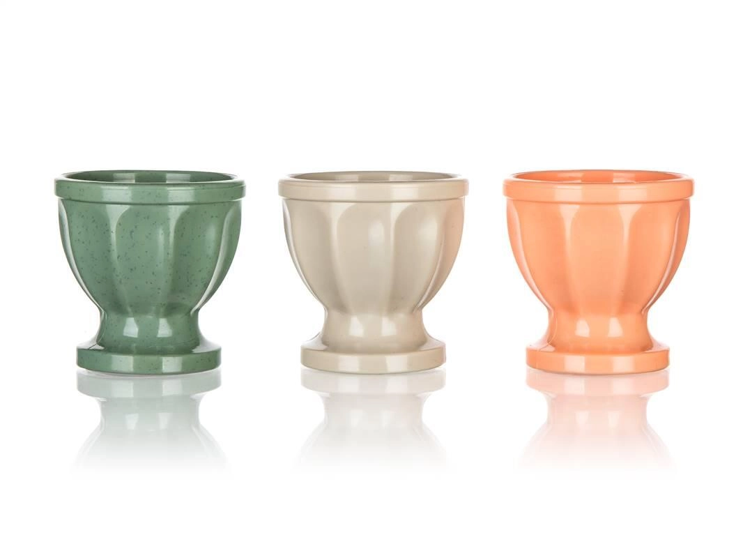 Praktický kalíšok na vajíčka Culinaria v balení 3 ks uľahčí štýlové servírovanie uvarených vajec. Odolný plastový materiál, jednoduchá údržba a mix farieb pre veselý prestretý stôl.