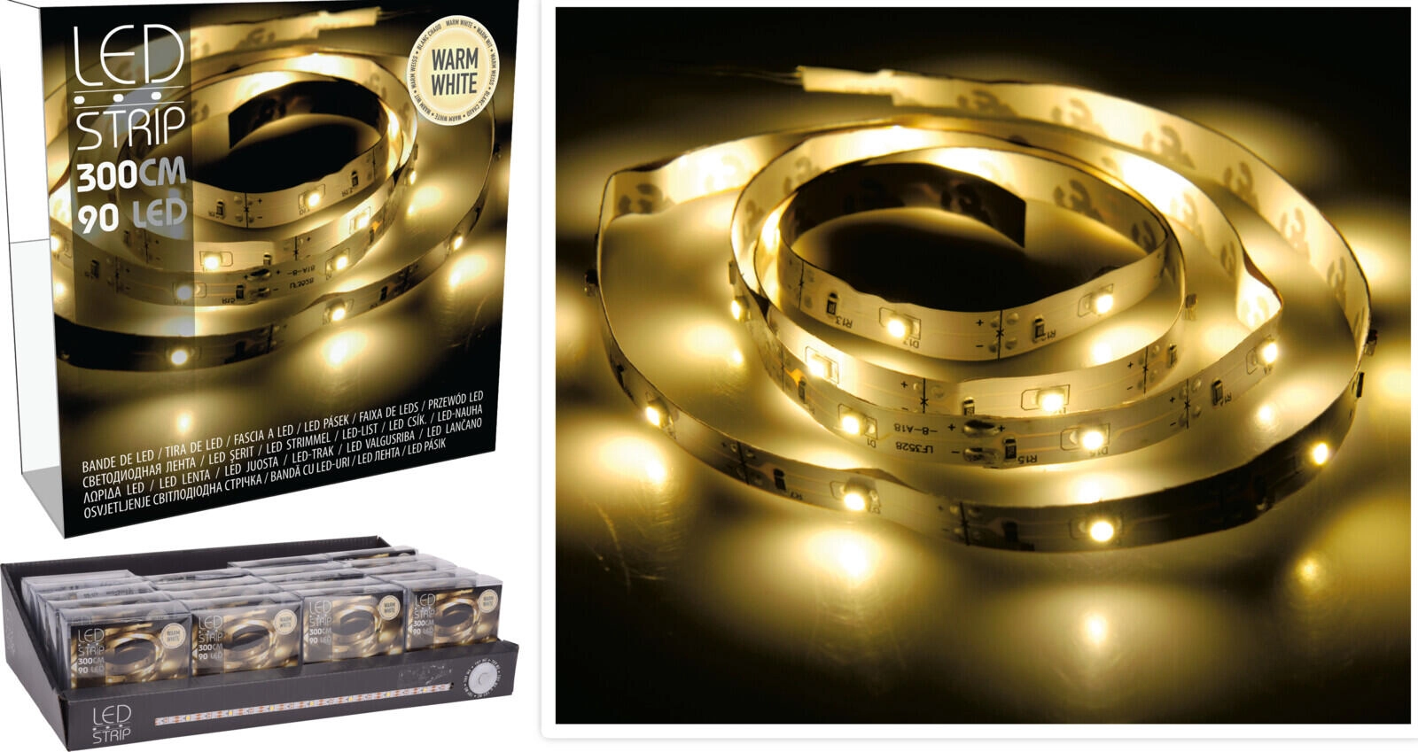 Vytvorte si útulnú atmosféru s flexibilným LED pásikom dlhým 3 metre. Vďaka rovnomernému rozloženiu 90 LED v farbe teplá biela získate jemné, neoslňujúce svetlo vhodné do obývačky, spálne, detskej izby aj na sezónne dekorácie.