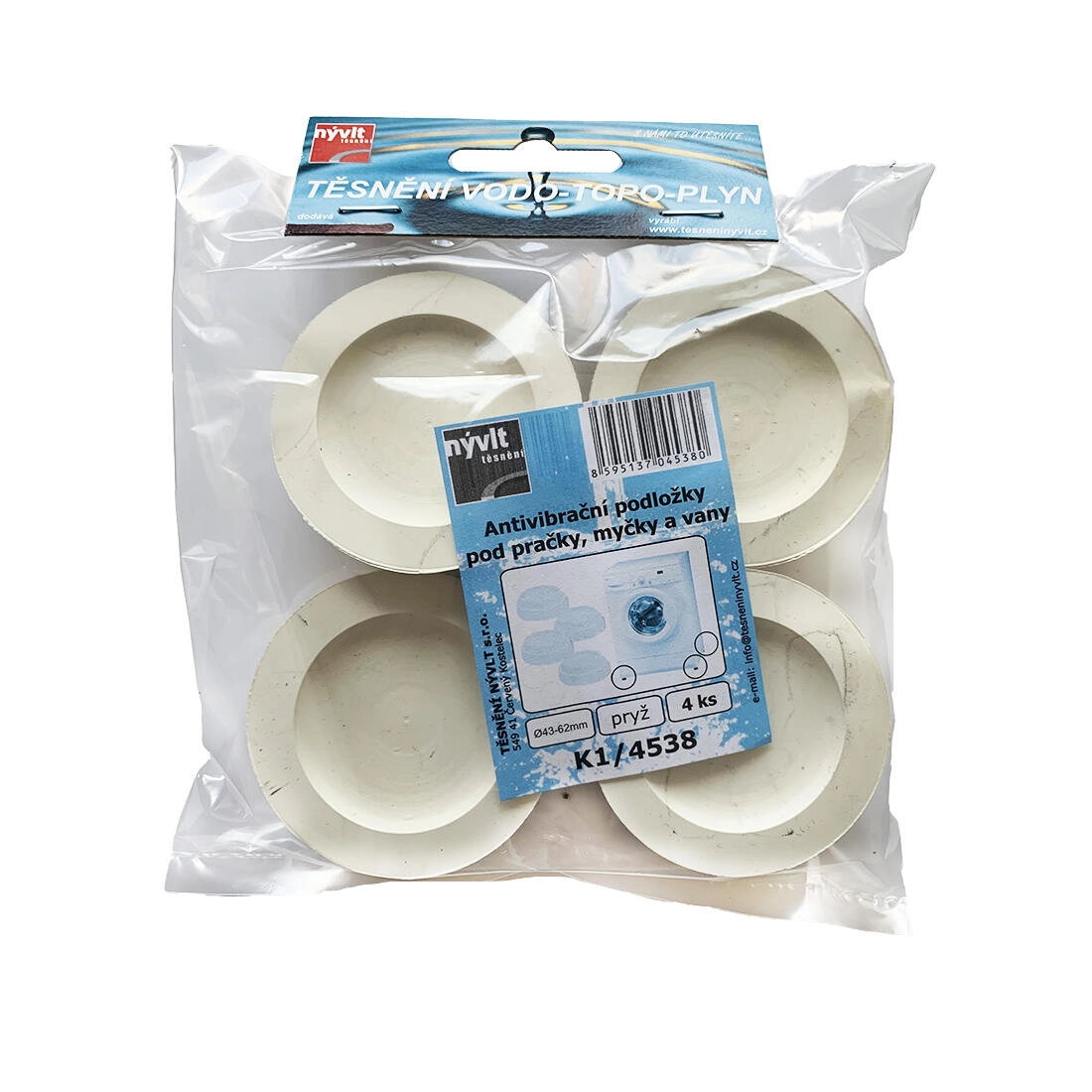 Univerzálne antivibračné podložky pre práčky, umývačky a vane účinne znižujú prenos vibrácií, zvyšujú stabilitu spotrebičov a chránia podlahu pred poškodením. Dodávajú sa v praktickom balení 4 ks v neutrálnej bielej farbe.