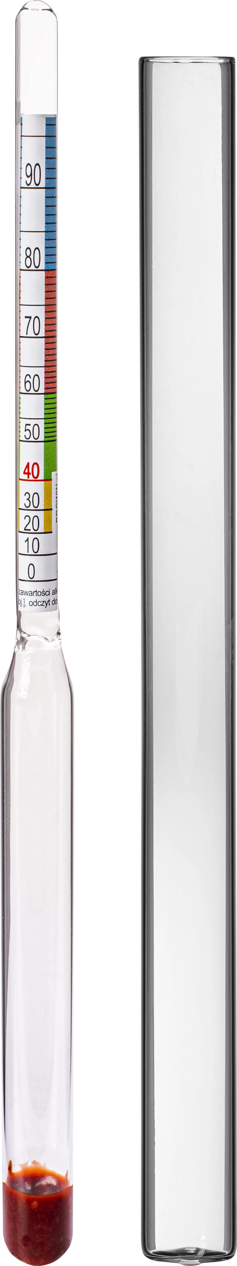 Spoľahlivý alkoholmeter určený na meranie objemového podielu alkoholu v rozmedzí 0–95 %. Vďaka jasne čitateľnej stupnici na plaváku poskytuje okamžité výsledky bez nutnosti ďalších konverzií. Stačí ponoriť do skúmanej kvapaliny a hodnotu odčítať na hladine.