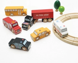 Vozidlá sú vyrobené eticky z FSC certifikovaného dreva a ručne domalované ekologickými farbami. Vďaka kompatibilite s populárnymi drevenými dráhami ľahko rozšírite detský svet o ďalšie prvky a trasy. Sada je navrhnutá tak, aby vydržala každodenné hranie a podporovala kognitívne zručnosti.