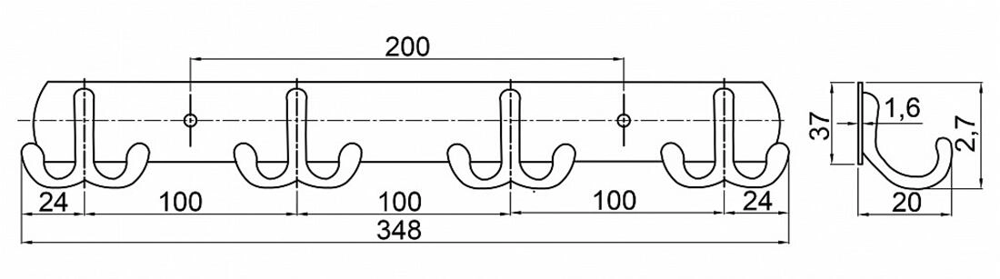 - Nástenný vešiak so štyrmi dvojháčikmi