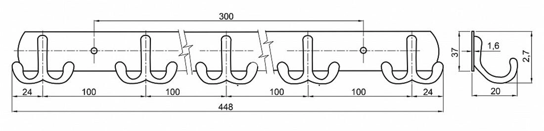 Nástenný vešiak s piatimi dvojitými háčikmi
