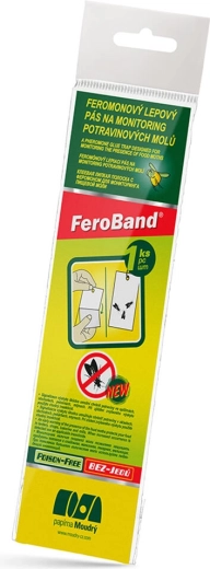 FeroBand je praktická pásová mololapka určená na monitoring a znižovanie populácie potravinových molí. Vďaka integrovanému feromónu účinne láka samcov a pomáha prerušiť reprodukčný cyklus. Jednostranne lepiaci povrch bezpečne zachytí hmyz bez použitia chemických insekticídov, takže je vhodný do kuchýň, špajzí aj potravinových skladov.