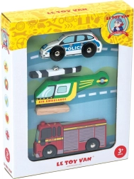 Predstavujeme sadu záchranárskych autíčok od Le Toy Van – perfektný darček pre deti. Táto hračka podporuje predstavivú hru vďaka trom záchranárskym vozidlám: helikoptére, policajnému autu a hasičskému vozidlu. Každé z nich je vyrobené z eticky udržateľného kaučukového dreva a maľované netoxickými farbami na báze vody, čo zaručuje bezpečnosť pri hre.