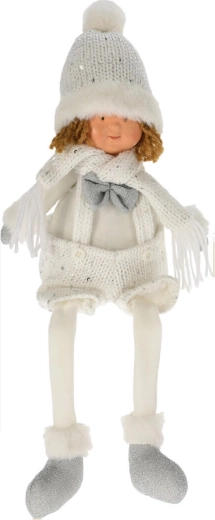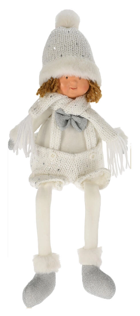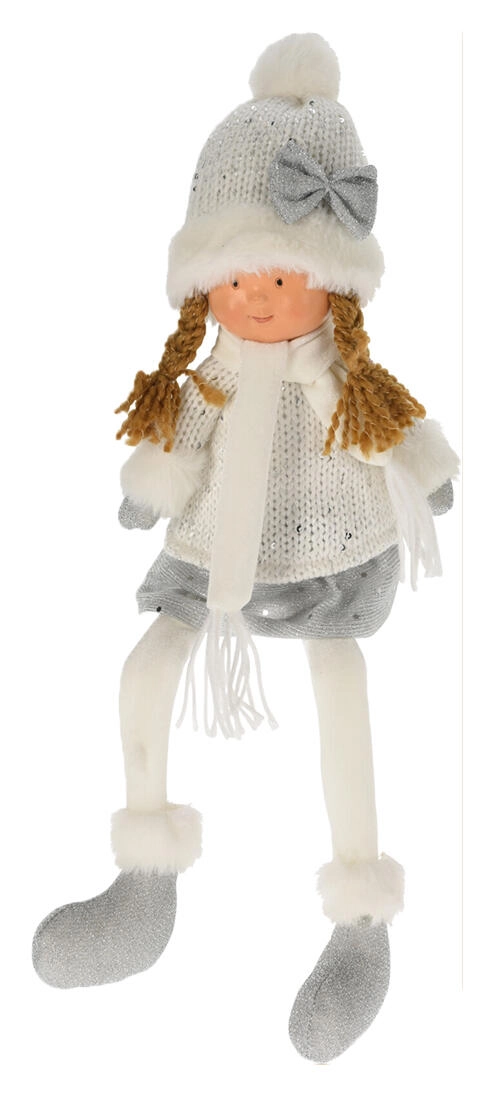 Roztomilá zimná dekorácia v podobe bábiky s dlhými nohami prinesie do každého interiéru čarovnú atmosféru. Mäkučké plyšové spracovanie, pletené doplnky a decentné bielo-strieborné prevedenie sa skvelo hodia na poličku, krbovú rímsu či okenný parapet. Ideálna ako vianočná dekorácia aj milý darček pre deti i dospelých.