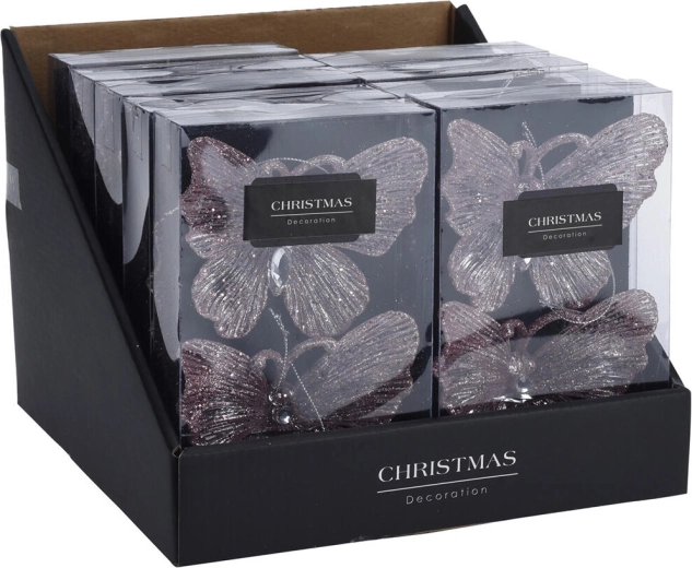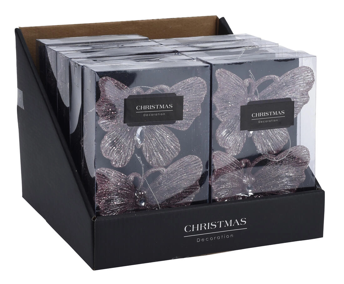 Elegantná vianočná dekorácia v tvare motýľa z kvalitného akrylu v jemnej ružovej farbe ozdobí vianočný stromček, okno aj poličku. Vďaka praktickej možnosti zavesenia je inštalácia jednoduchá a rýchla. Sada obsahuje 2 kusy s výškou 11 cm, ktoré sa skvele hodia nielen na Vianoce, ale aj ako celoročná dekorácia interiéru.
