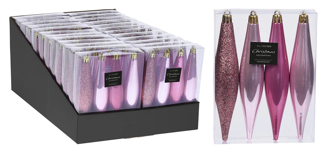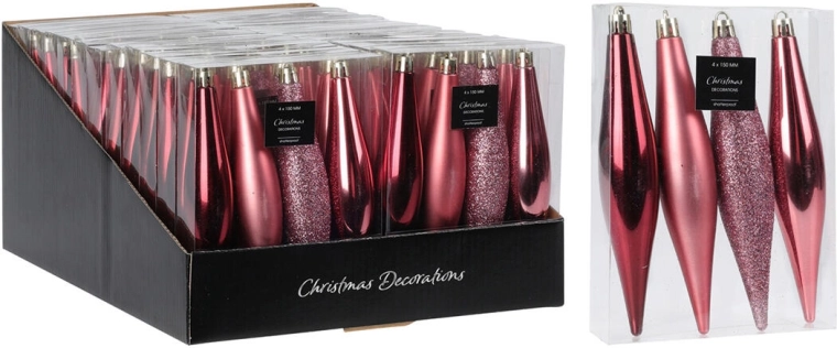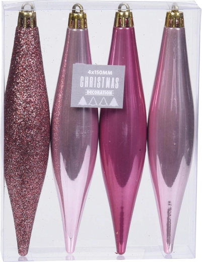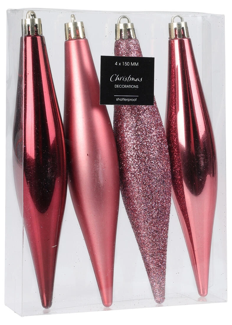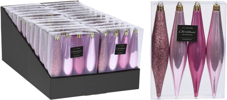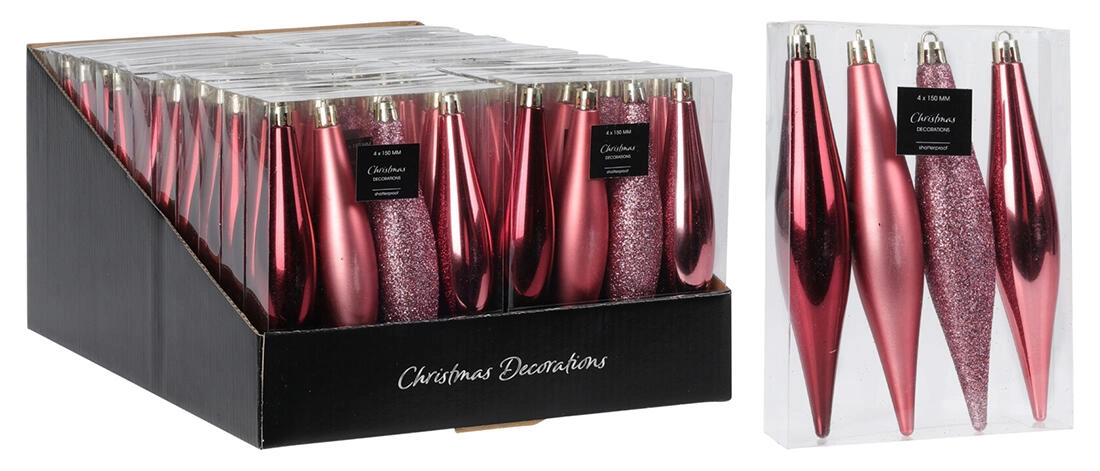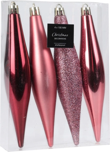 Elegantné závesné vianočné ozdoby v tvare rampúchov dodajú vášmu stromčeku aj interiéru nádych zimnej rozprávky. Sada obsahuje 4 kusy v ružovej farbe s mixom odtieňov pre prirodzený a štýlový efekt. Vďaka výške 15 cm krásne vyniknú medzi vetvami a ľahko sa kombinujú s ďalšou vianočnou výzdobou.