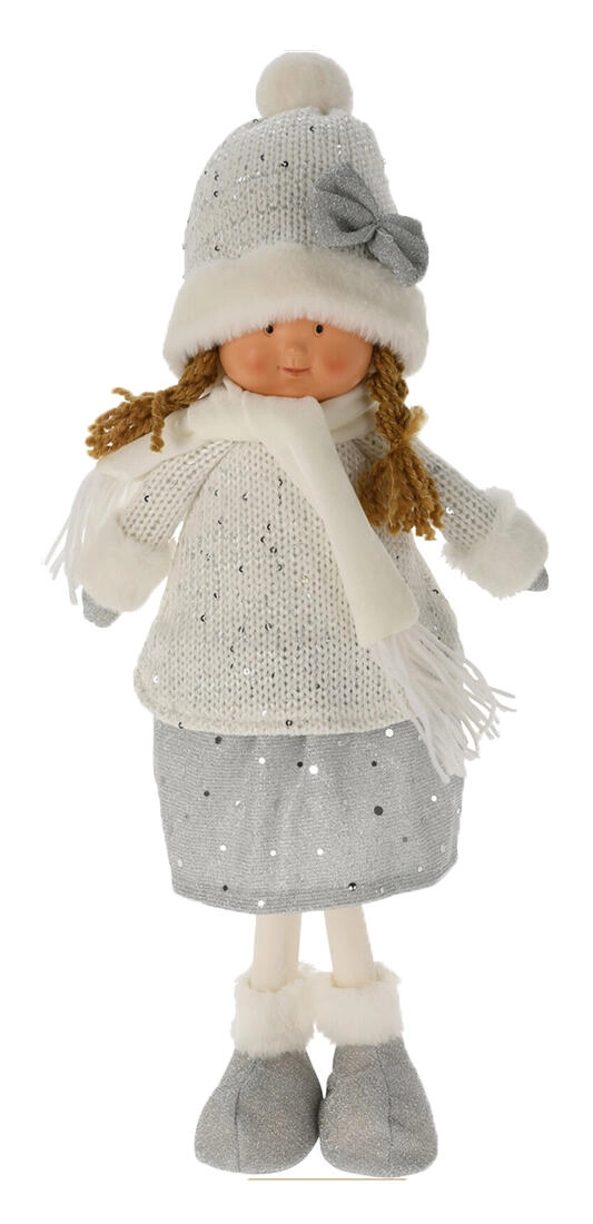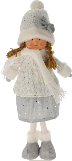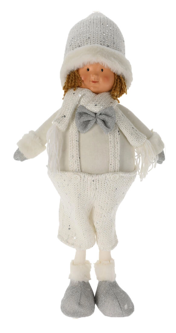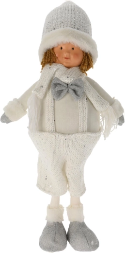 Táto stojaca figúrka v zimnom outfite poteší deti aj dospelých. Krásne ladí s modernými interiérmi a vďaka jemným detailom – pletenej čiapke s brmbolcom, šálu a hebkým čižmičkám – pôsobí útulne a slávnostne. Ľahká, no stabilná dekorácia, ktorú jednoducho umiestnite na akúkoľvek rovnú plochu.