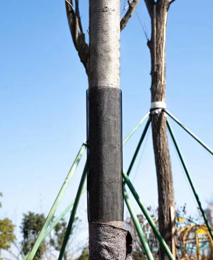 Sieťovaná štruktúra vytvára pevnú bariéru proti ohryzu a oderu, pritom neobmedzuje prúdenie vzduchu ani prístup svetla ku kmeňu.