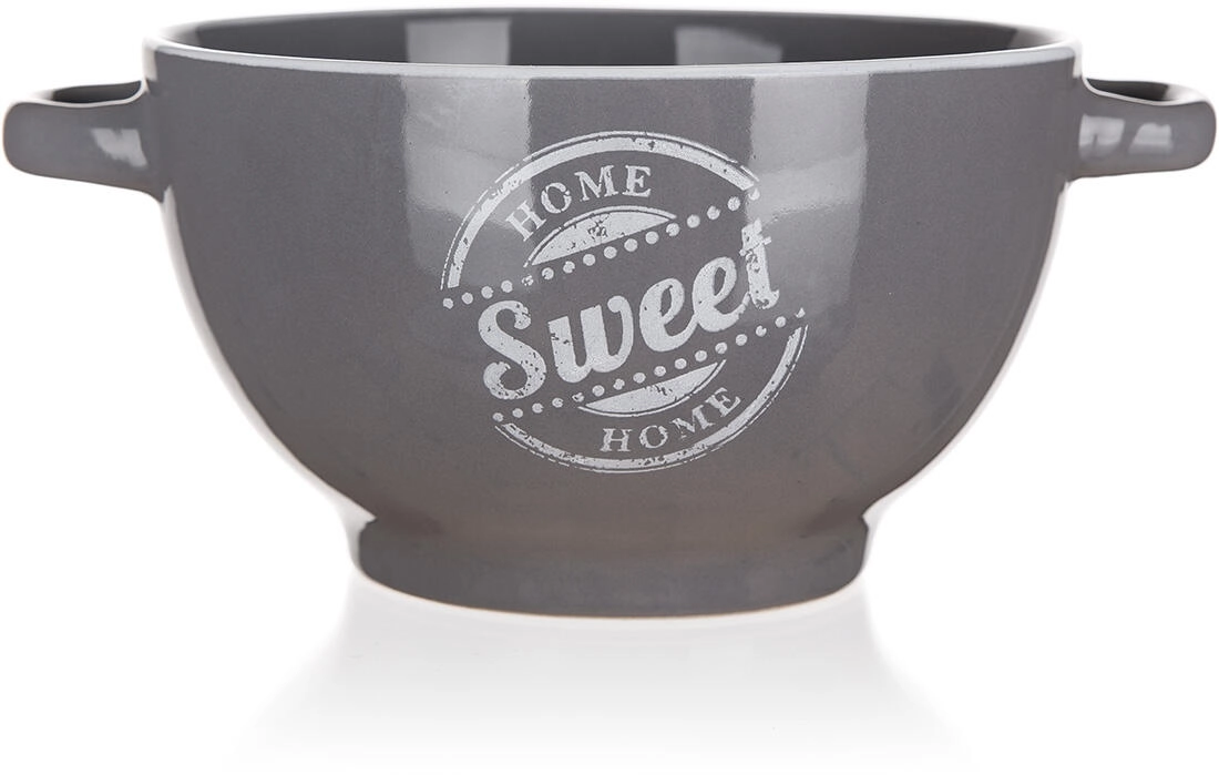 Štýlová keramická miska s dekorom SWEET HOME s priemerom 14 cm a objemom 660 ml je ideálna na servírovanie polievok, šalátov aj raňajkových zmesí. Vďaka kvalitnej keramike je vhodná do mikrovlnnej rúry a možno ju umývať v umývačke riadu. Elegantná sivá farba ľahko zapadne do každej kuchyne.