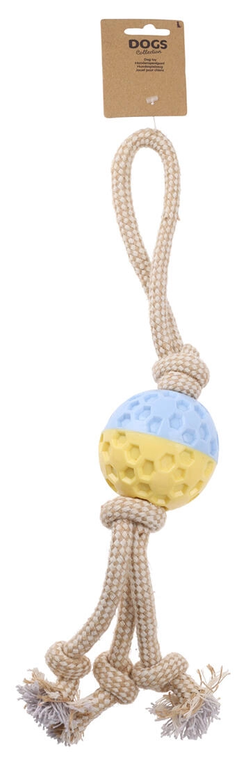 Univerzálna psia hračka na každodennú zábavu – robustné lano s textúrovanou loptičkou z TPR. Ideálna na hádzanie, aportovanie aj preťahovanie. Odolná kombinácia TPR a bavlny je šetrná k zubom, podporuje dentálnu hygienu a poskytuje istý úchop pre psa aj majiteľa.