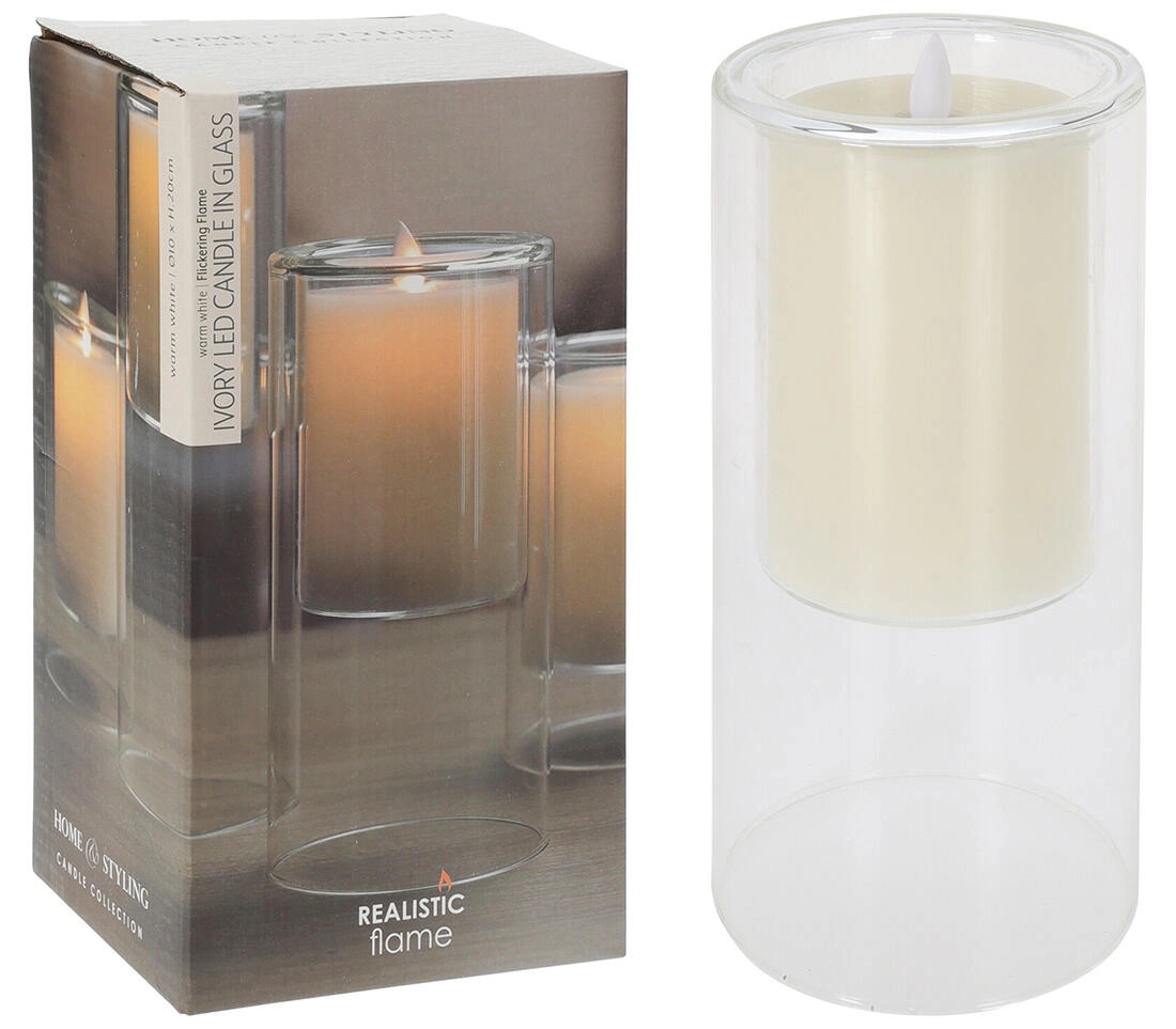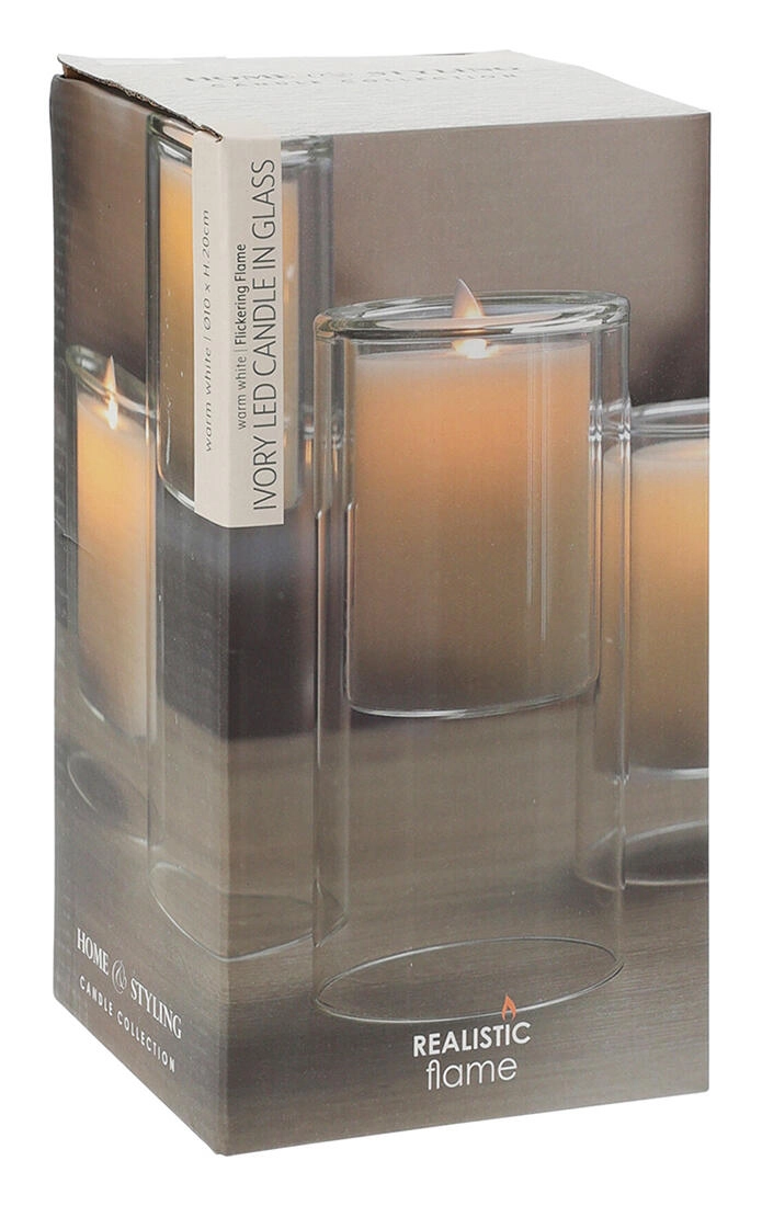 Táto štýlová LED sviečka s priemerom 10 cm a výškou 20 cm je ukrytá v pevnom sklenenom obale, ktorý podčiarkuje jej elegantný vzhľad. Jemný odtieň ivory pôsobí univerzálne a jednoducho sa kombinuje s akýmkoľvek interiérom.