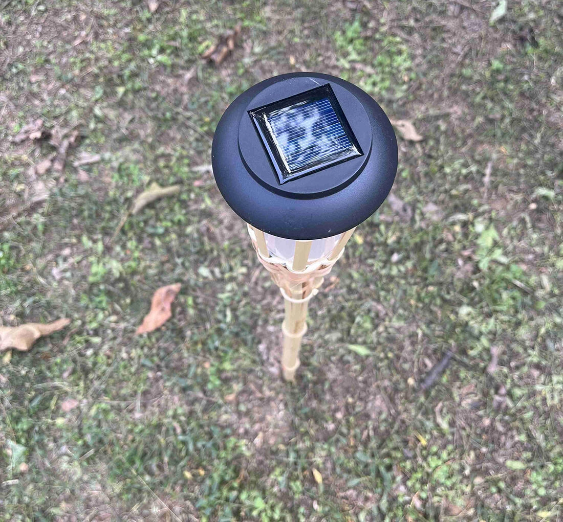 Užite si atmosférické vonkajšie osvetlenie s prírodnou estetikou. Táto solárna bambusová pochodeň kombinuje elegantný vzhľad s praktickou prevádzkou na energiu zo slnka. Vstavaný polykryštalický panel počas dňa nabíja batériu a večer sa pochodeň automaticky rozsvieti.