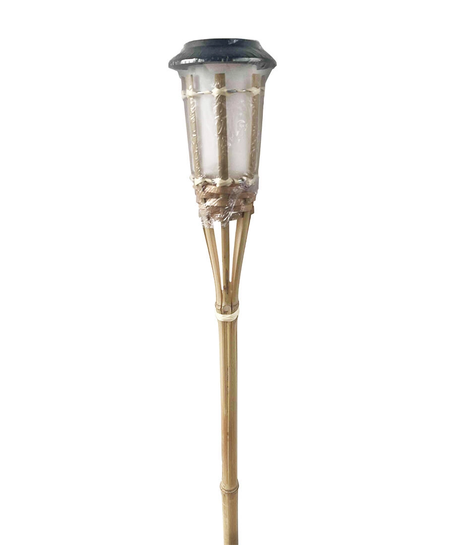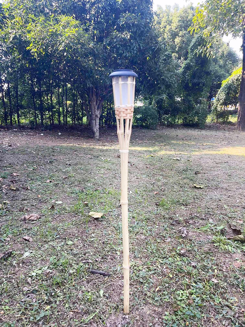 Solárna bambusová záhradná pochodeň 90 cm, teplá biela
