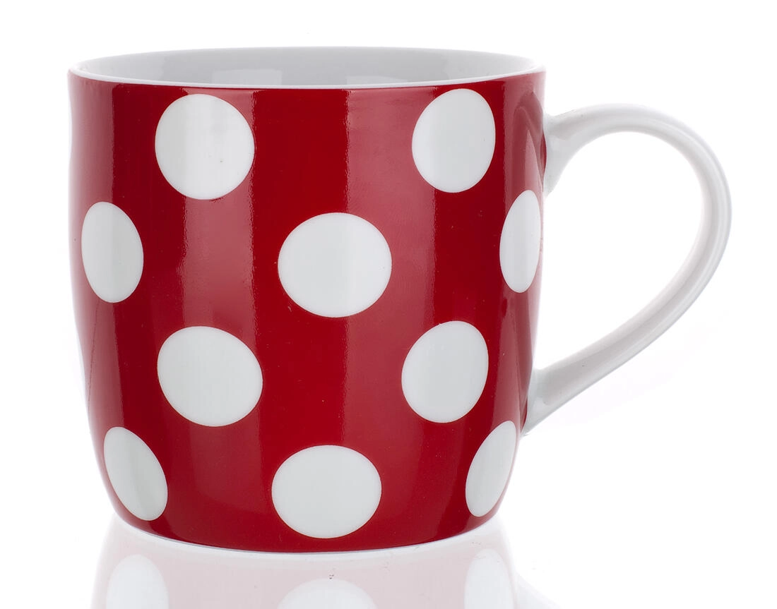 Štýlový červený hrnček s bielymi bodkami s objemom 310 ml je ideálny na každodenné používanie. Je vyrobený z kvalitnej keramiky, takže výborne udrží teplotu vašich nápojov. Vhodný do mikrovlnnej rúry a možno umývať v umývačke riadu pre maximálne pohodlie.