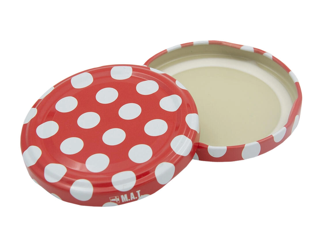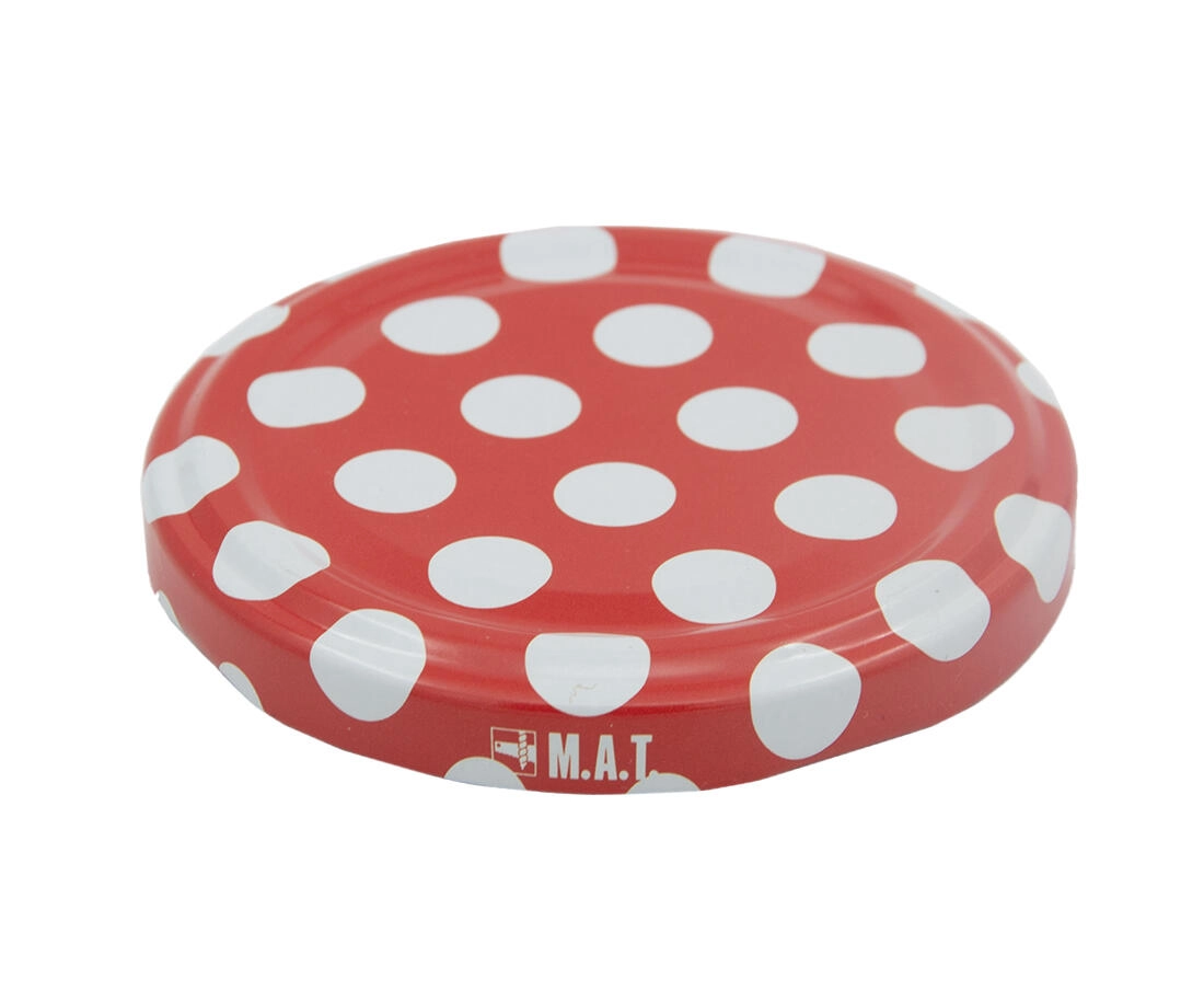 Červené viečko s bielymi bodkami dodá vašim domácim výrobkom atraktívny vzhľad – ideálne aj ako darček.