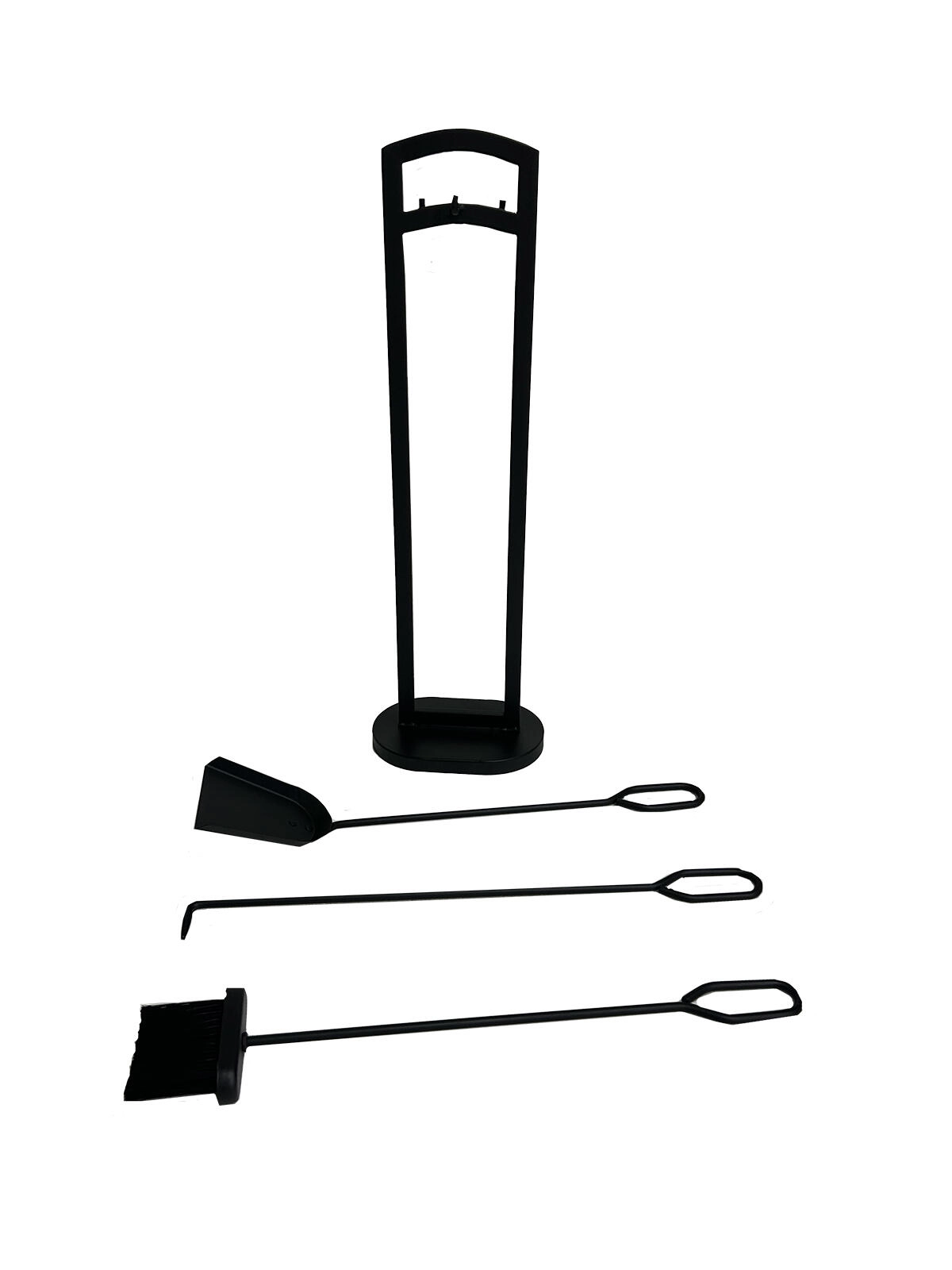 Praktická a elegantná 3-dielna sada krbového náradia so stojanom v čiernom kovovom prevedení vám uľahčí údržbu krbu aj kachlí. Obsahuje lopatku, pohrabáč a metličku a vďaka výške 70 cm sa pohodlne používa. Odolný kov a nadčasový čierny dizajn podčiarknu štýl vášho interiéru.
