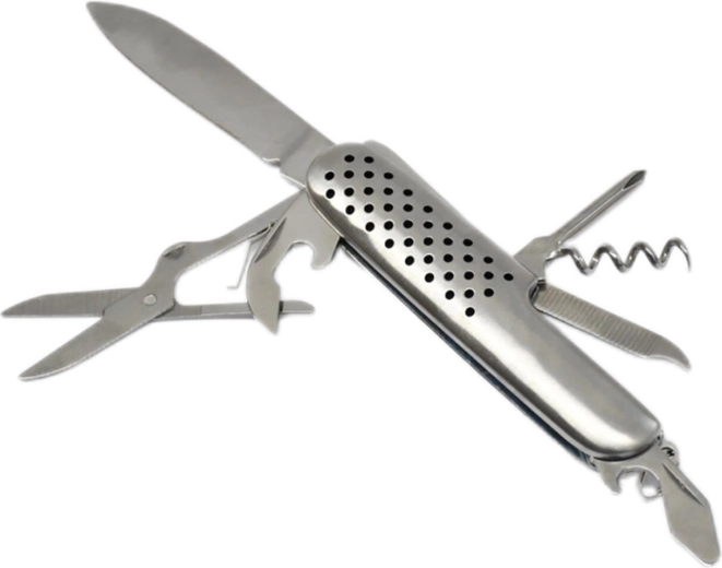 Vďaka siedmim praktickým funkciám máte po ruke všetko potrebné: od krájania a strihania až po otváranie fliaš a prácu so skrutkami. Oceľová zliatina 2CR13 zabezpečuje dobrú odolnosť proti korózii a jednoduchú údržbu, takže nôž vydrží dlhodobé používanie.