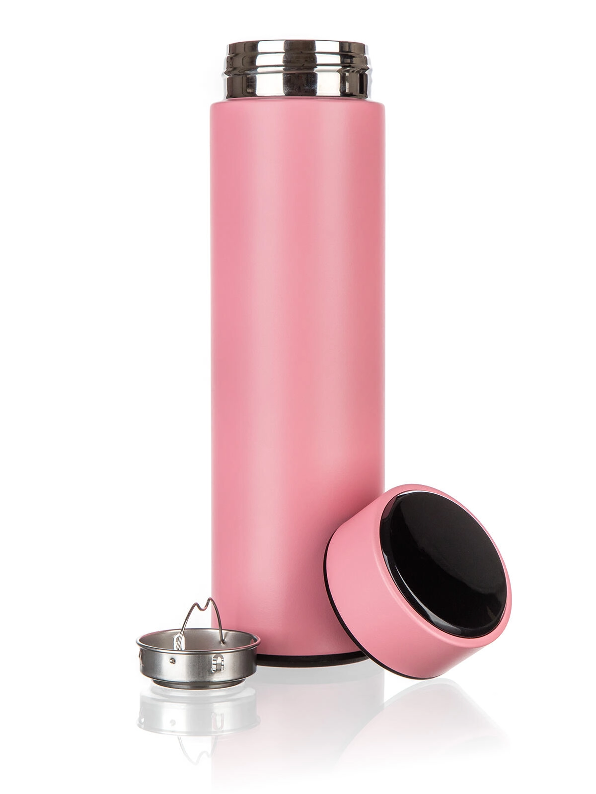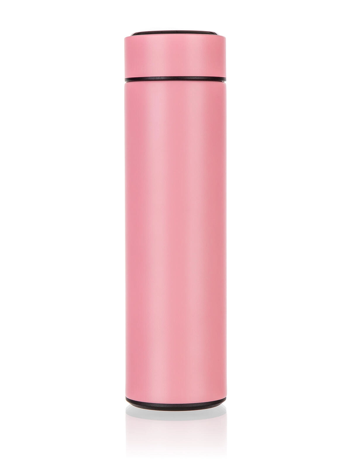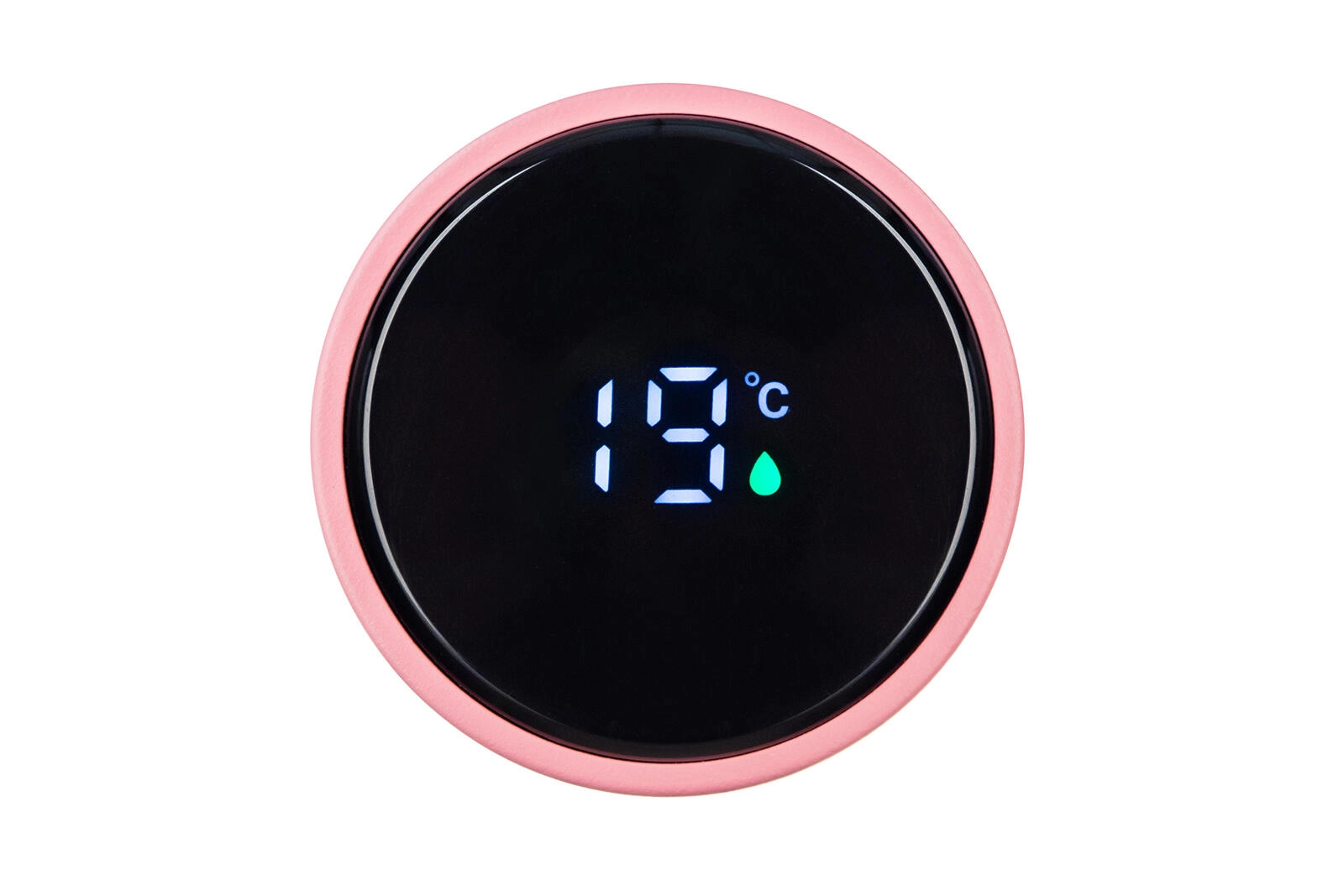 Inteligentná nerezová termoska s teplomerom 0,47 l – ružová