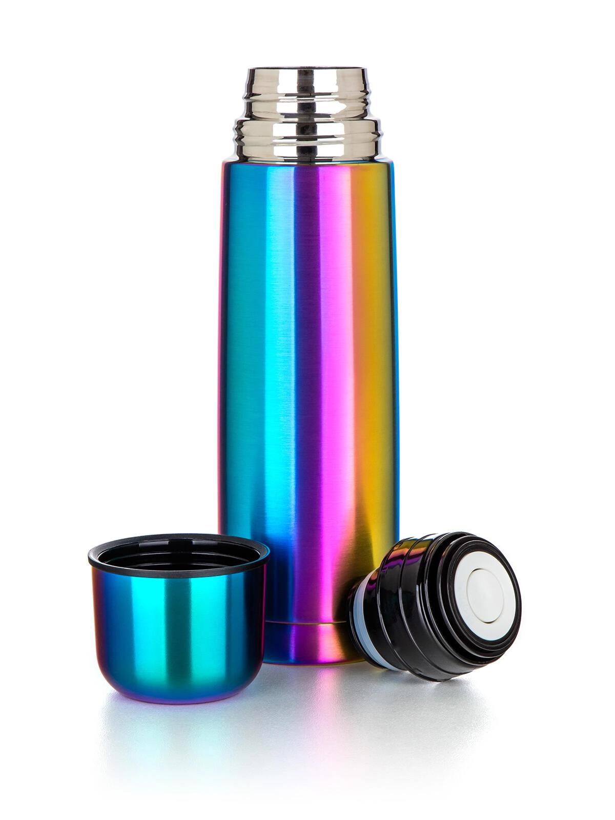 Štýlová nehrdzavejúca termoska AVANZA s objemom 0,5 l v dúhovom matnom prevedení udrží vaše nápoje dlho horúce aj studené. Vďaka vakuovej dvojplášťovej izolácii, odolnej konštrukcii z nehrdzavejúcej ocele a praktickému uzáveru na stlačenie sa skvele hodí na cestovanie, do práce aj na výlety. Viečko zároveň poslúži ako pohárik na pitie.
