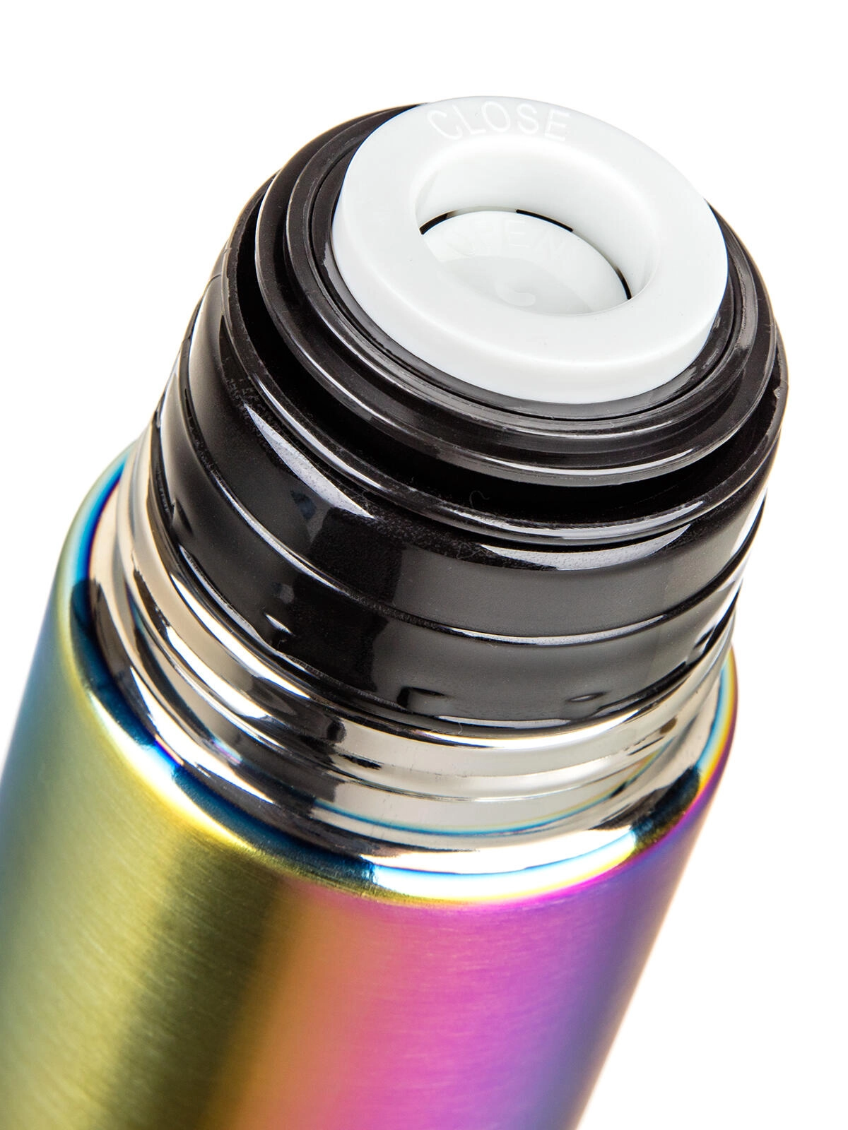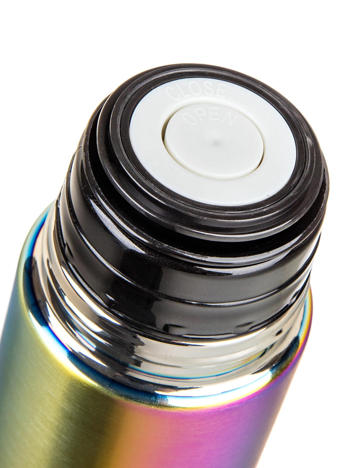 Praktický plastový uzáver s klipom umožňuje nalievať jedným stlačením – jedným otvoríte, druhým zatvoríte. Viečko slúži ako pohárik, takže hrnček už riešiť nemusíte. Eleganciu dopĺňa dúhový matný povrch, ktorý zaujme na prvý pohľad a súčasne je odolný voči bežnému opotrebovaniu.