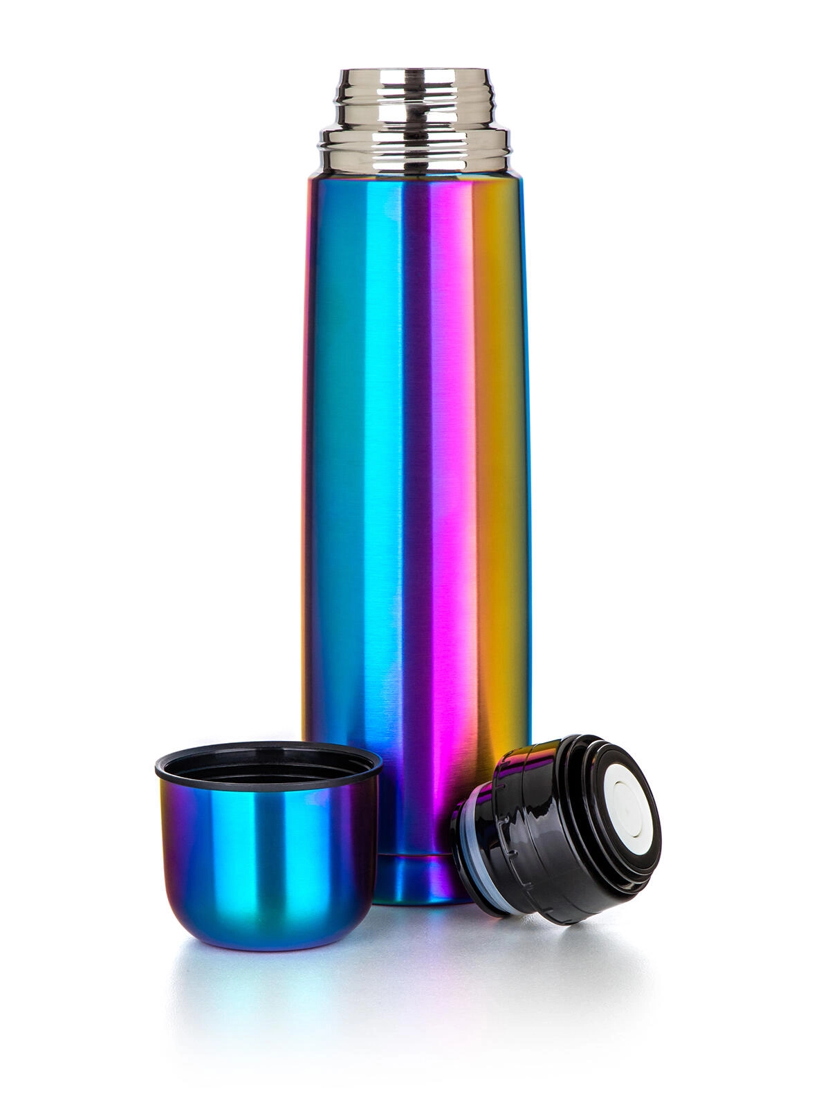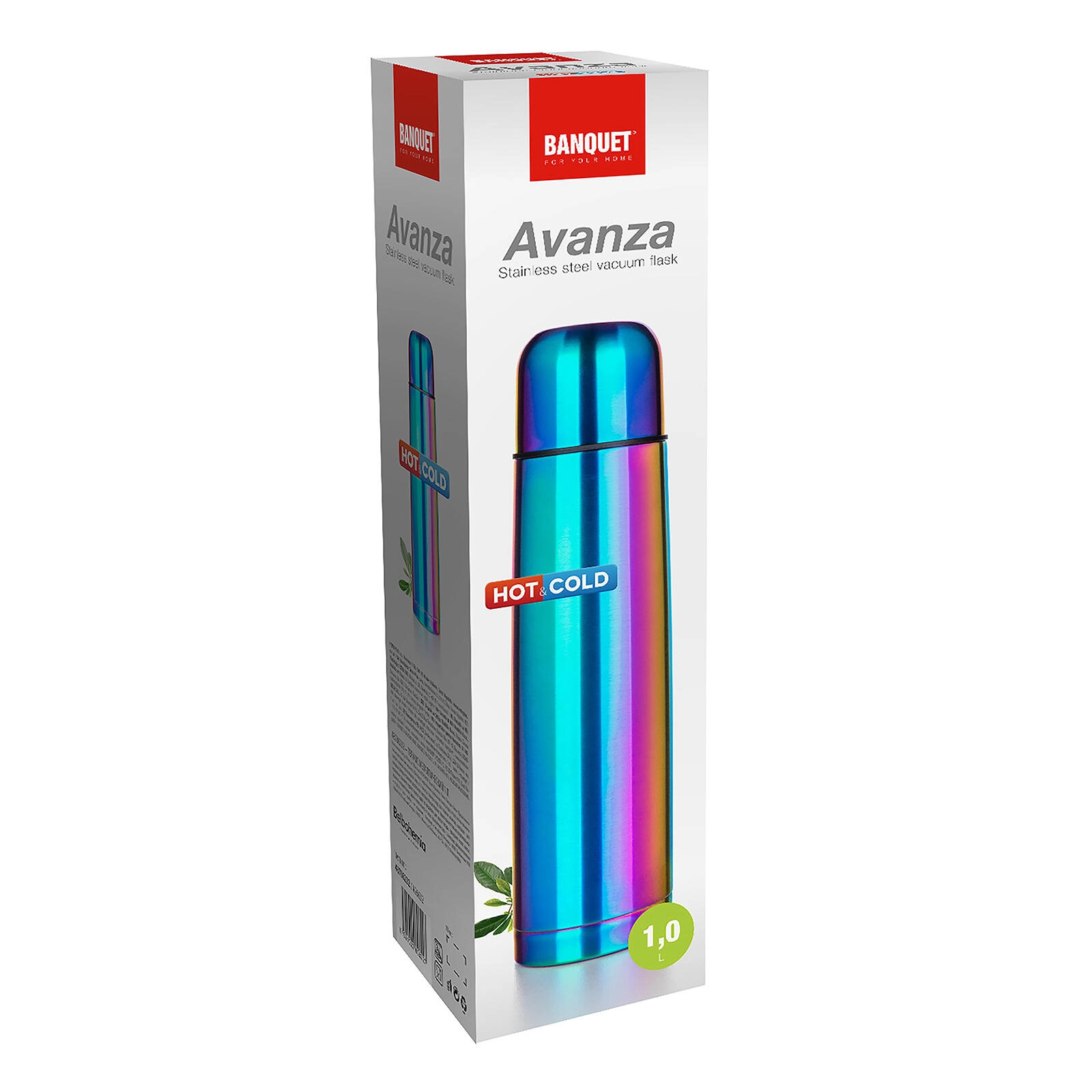 Termoska AVANZA s objemom 1 liter je ideálnym spoločníkom do práce, do školy aj na výlety. Vďaka vákuovej dvojplášťovej izolácii a celonerezovému prevedeniu (vonkajší aj vnútorný povrch z nehrdzavejúcej ocele 201) spoľahlivo udrží teplotu nápoja po dlhý čas. Matná dúhová úprava dodáva fľaši výrazný a elegantný vzhľad.