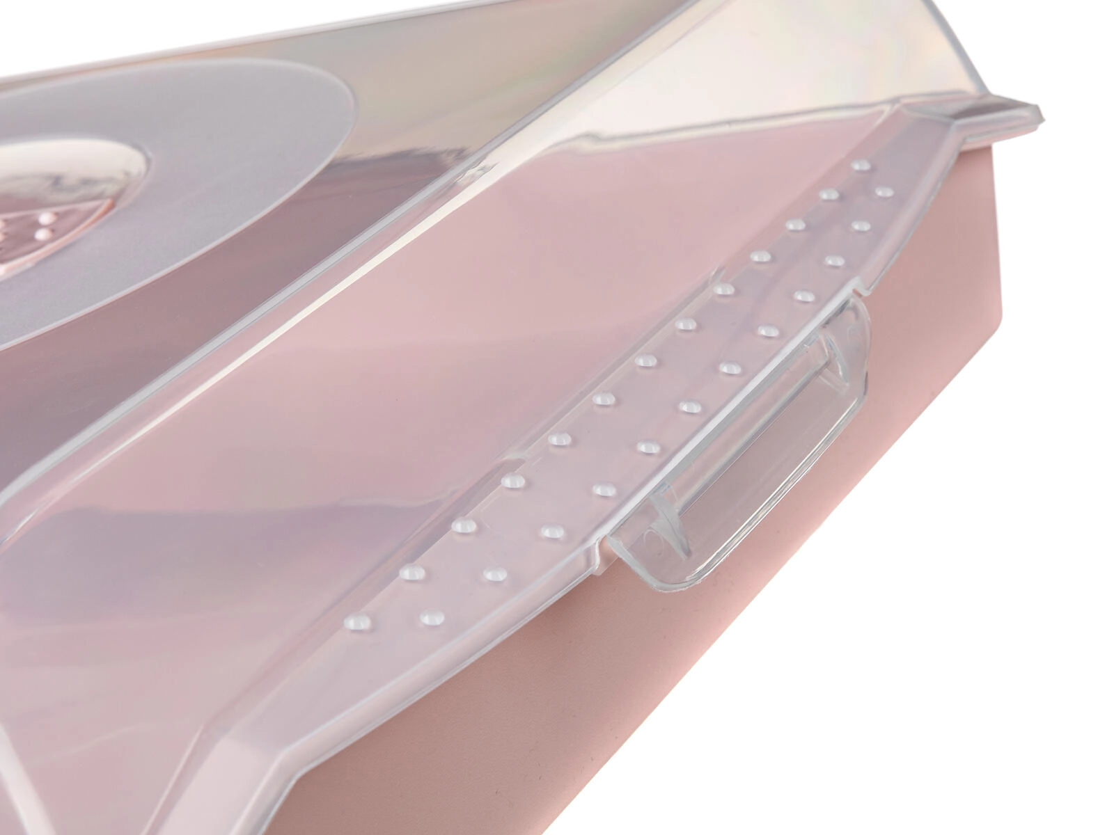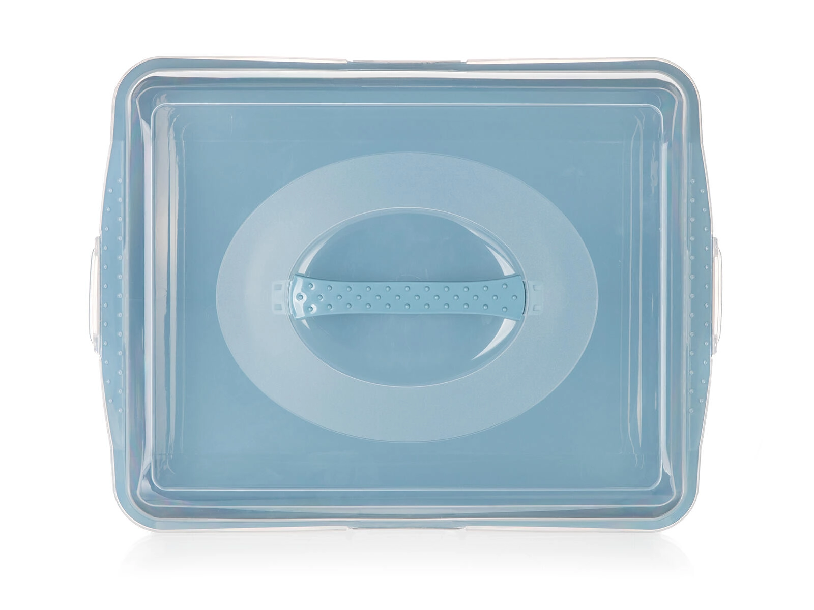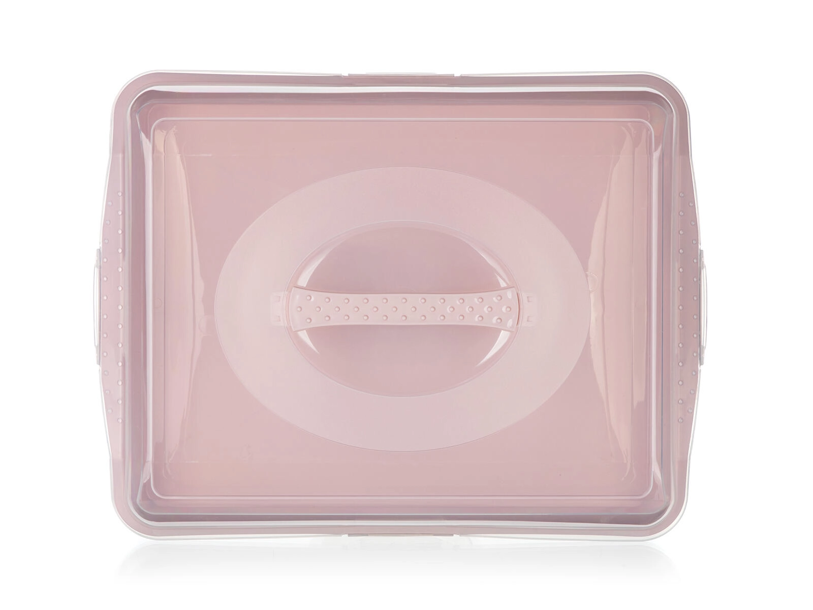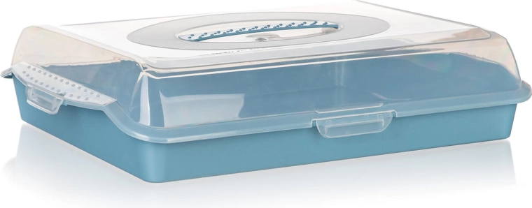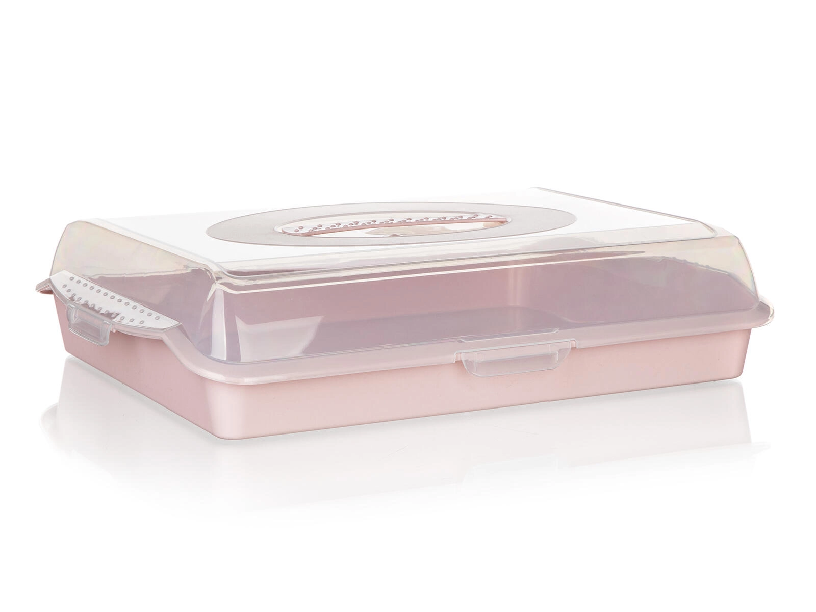 Praktický plastový podnos s vekom Culinaria s rozmermi 45 × 35 × 10,5 cm je ideálny na prehvoz a uchovávanie koláčov, tort a zákuskov. Priesvitné veko s bezpečnými klipmi chráni obsah pred prachom a poškodením, zatiaľ čo nízky profil umožňuje pohodlné stohovanie. Dostupný v mixe farieb – ružová a modrá.