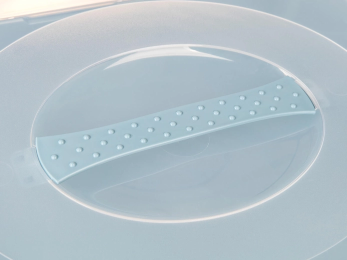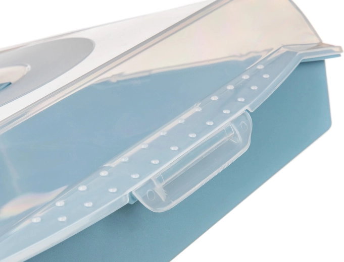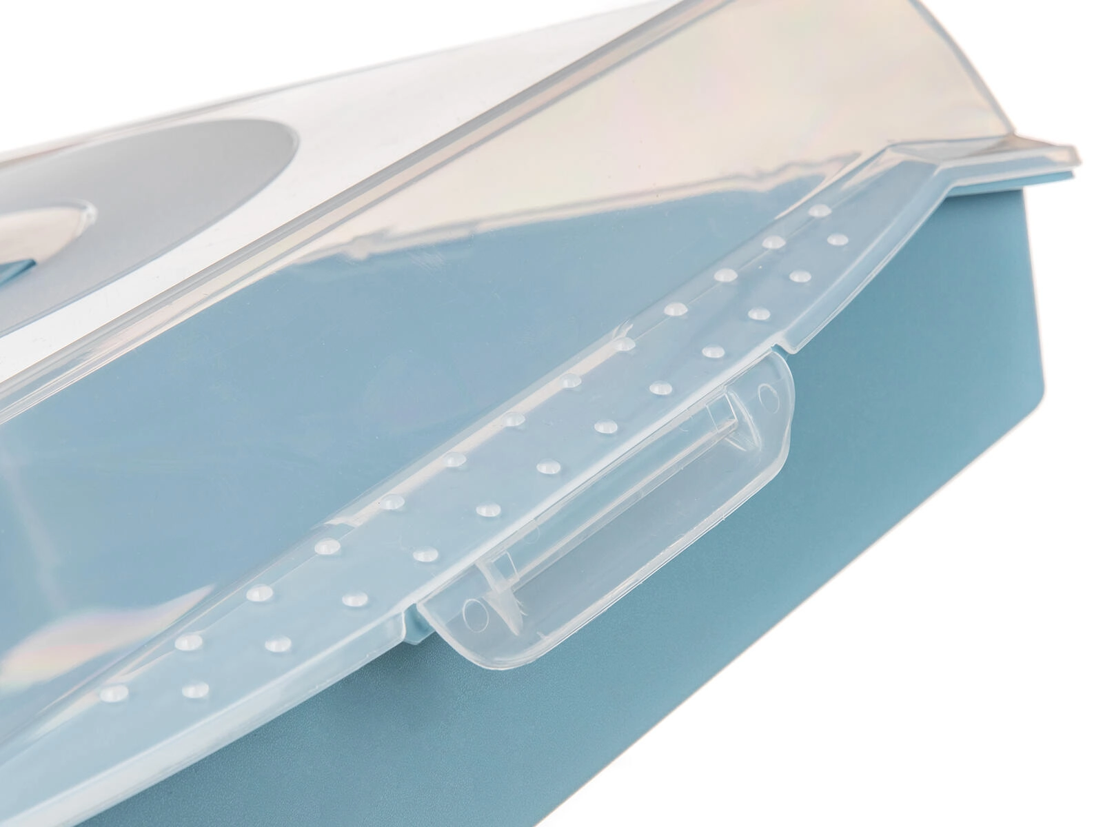 Spoľahlivé klipy po bokoch udržia veko pevne na mieste, takže sa dezerty pri preprave neuvoľnia a zostanú chránené pred prachom aj vlhkosťou.