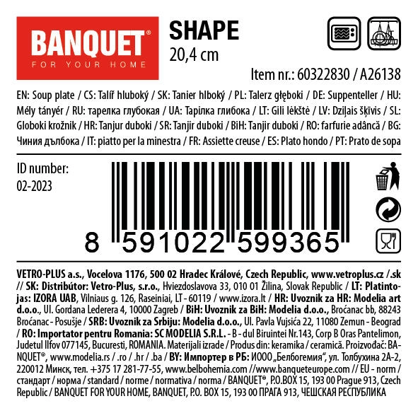 - Praktický priemer 20,4 cm: ideálna veľkosť na polievky aj hlavné chody z misy.