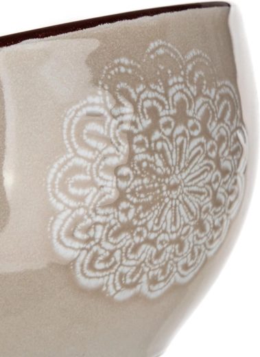 Jemne reliéfny mandalový/čipkovaný vzor s tmavším lemom dodáva miske SHAPE výnimočný charakter a ľahko sa kombinuje s ďalším riadom.