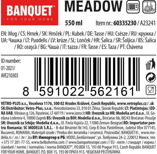 Vychutnajte si svoj obľúbený čaj alebo kávu s priestranným hrnčekom s objemom 550 ml s prírodným motívom MEADOW. Odolný keramický hrnček s lesklou glazúrou je vhodný na horúce aj studené nápoje, môžete ho dať do umývačky riadu aj mikrovlnnej rúry. Skvele padne do ruky a ozdobí každý stôl.