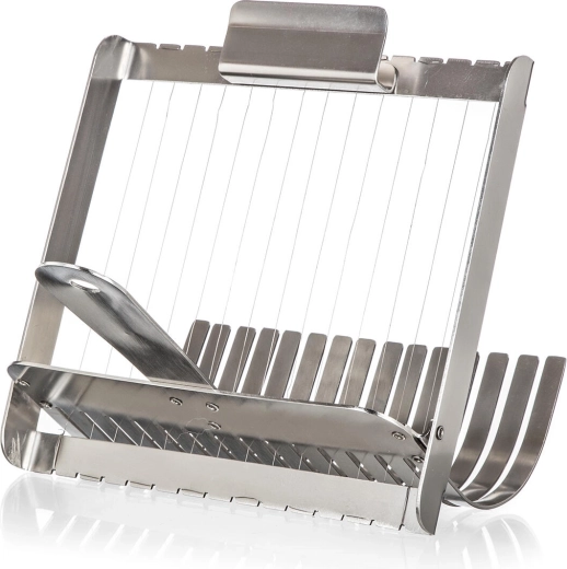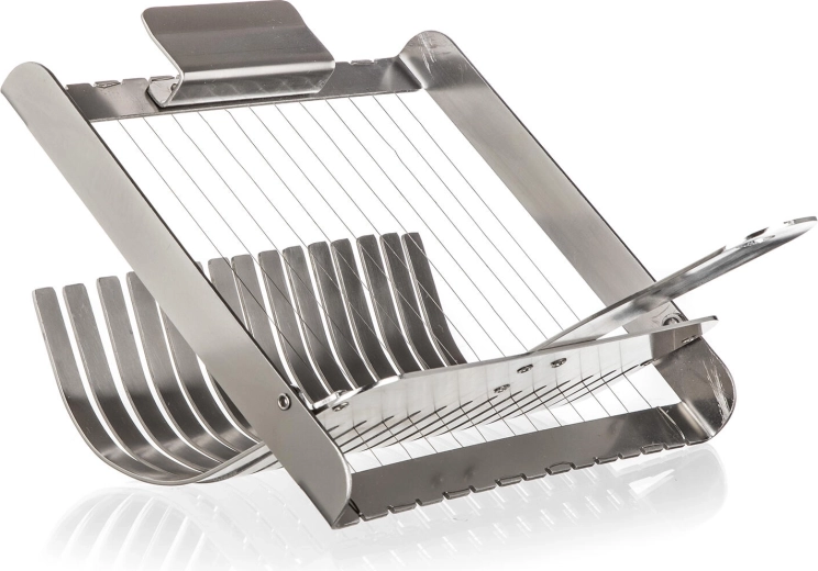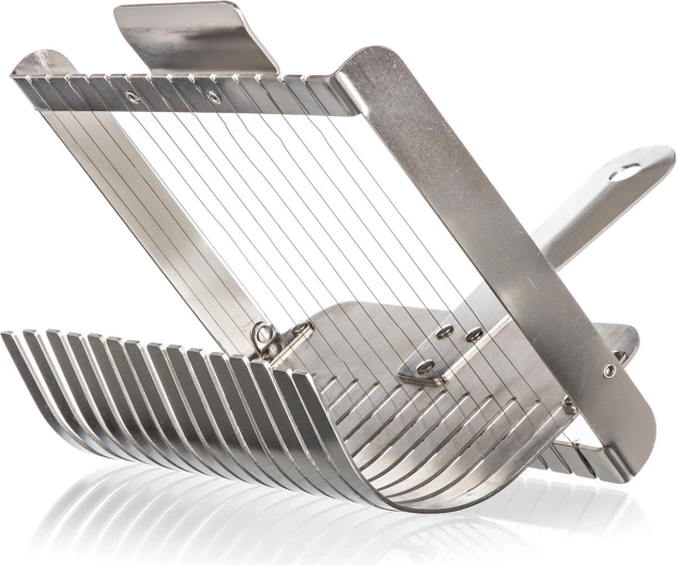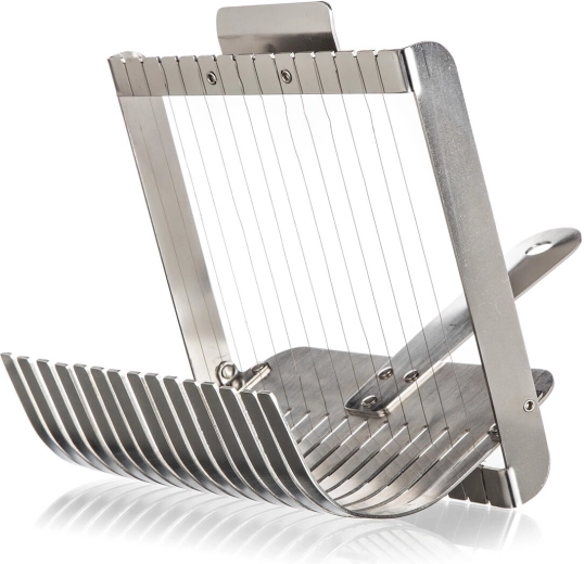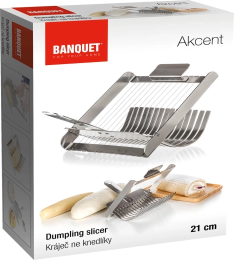 Praktický strunový krájač na knedle AKCENT z kvalitnej nehrdzavejúcej ocele zabezpečí dokonale rovnomerné plátky bez stláčania a trhania. Vďaka integrovanému podbieraku ľahko vyberiete čerstvo uvaren é knedle z horúcej vody a počas chvíľky ich rýchlo a presne nakrájate. Vhodný aj na piškótové rolády, mäkké syry a ďalšie mäkké potraviny.