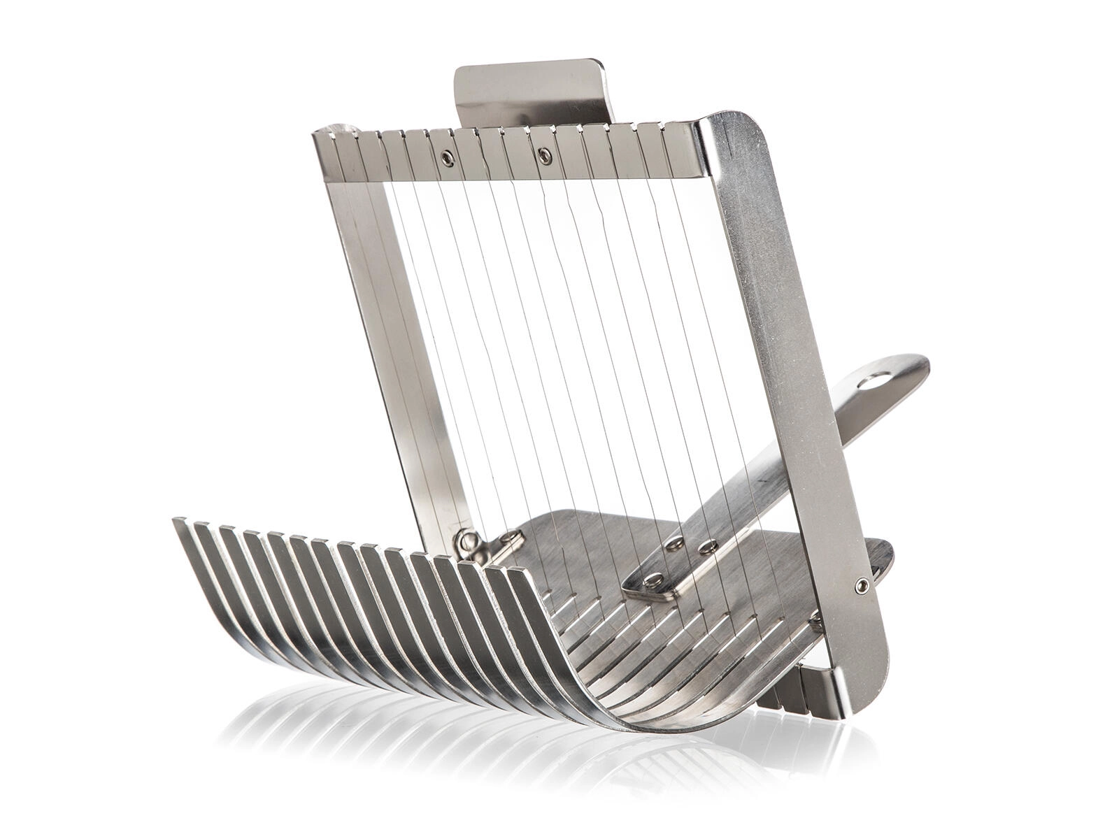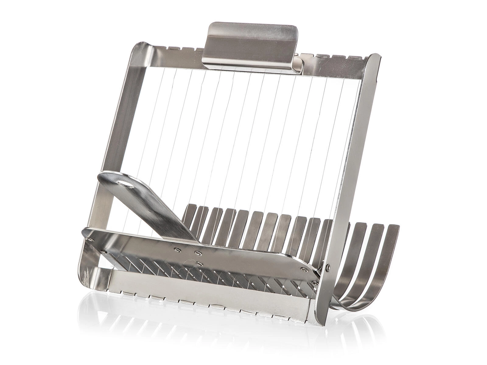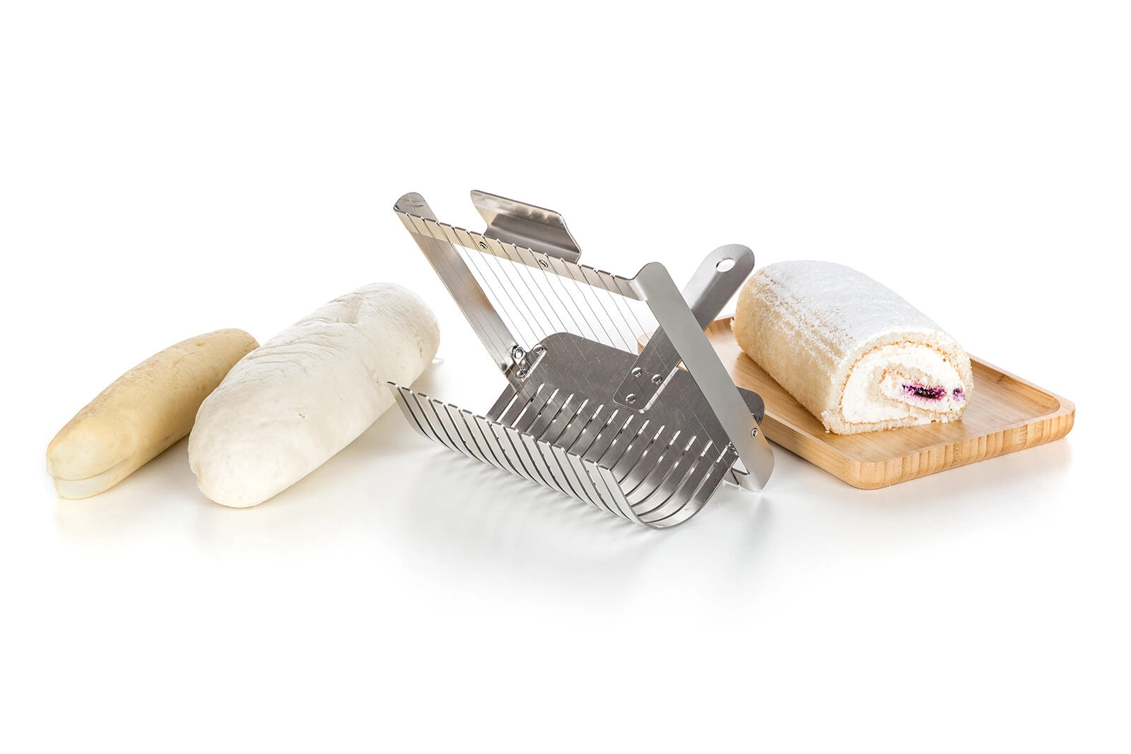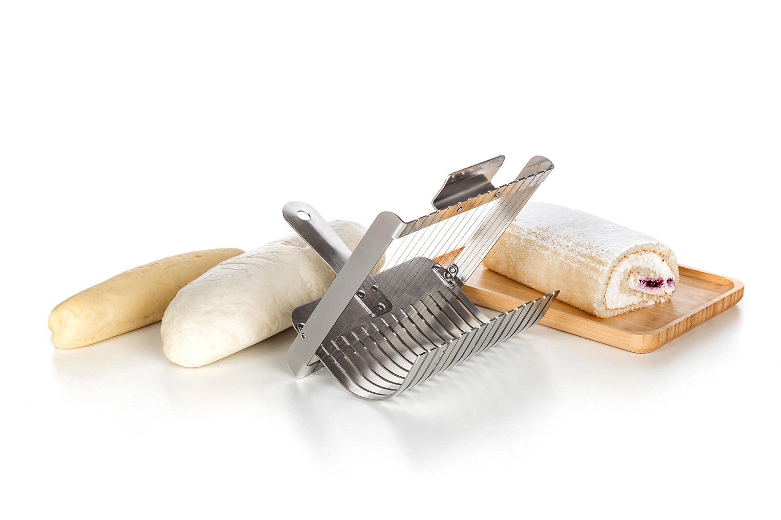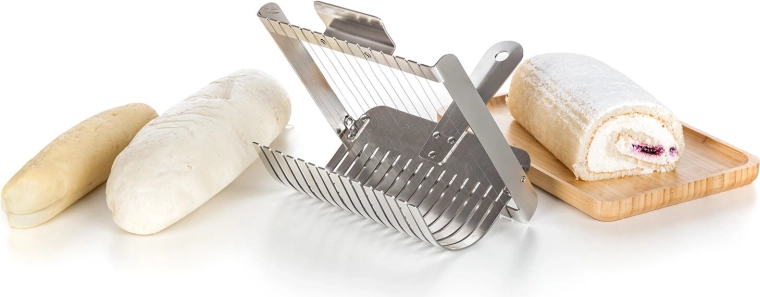 Strunový mechanizmus krája mäkké knedle aj rolády na čisté, súmerné plátky bez stláčania. Skvelý výsledok pri servírovaní.