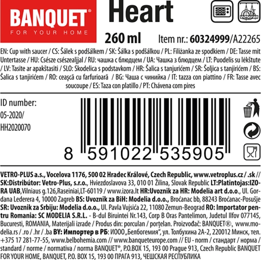 Vychutnajte si svoju obľúbenú kávu alebo čaj so štýlom – šálka s podšálkou HEART v elegantnej bordó farbe a s dekoratívnym motívom srdca dodá vášmu stolovaniu nádych útulnosti. Objem 260 ml je ideálny na cappuccino, latté aj sypané čaje.