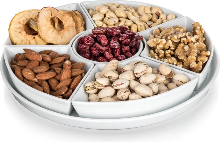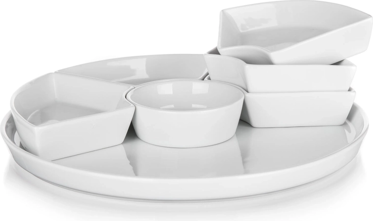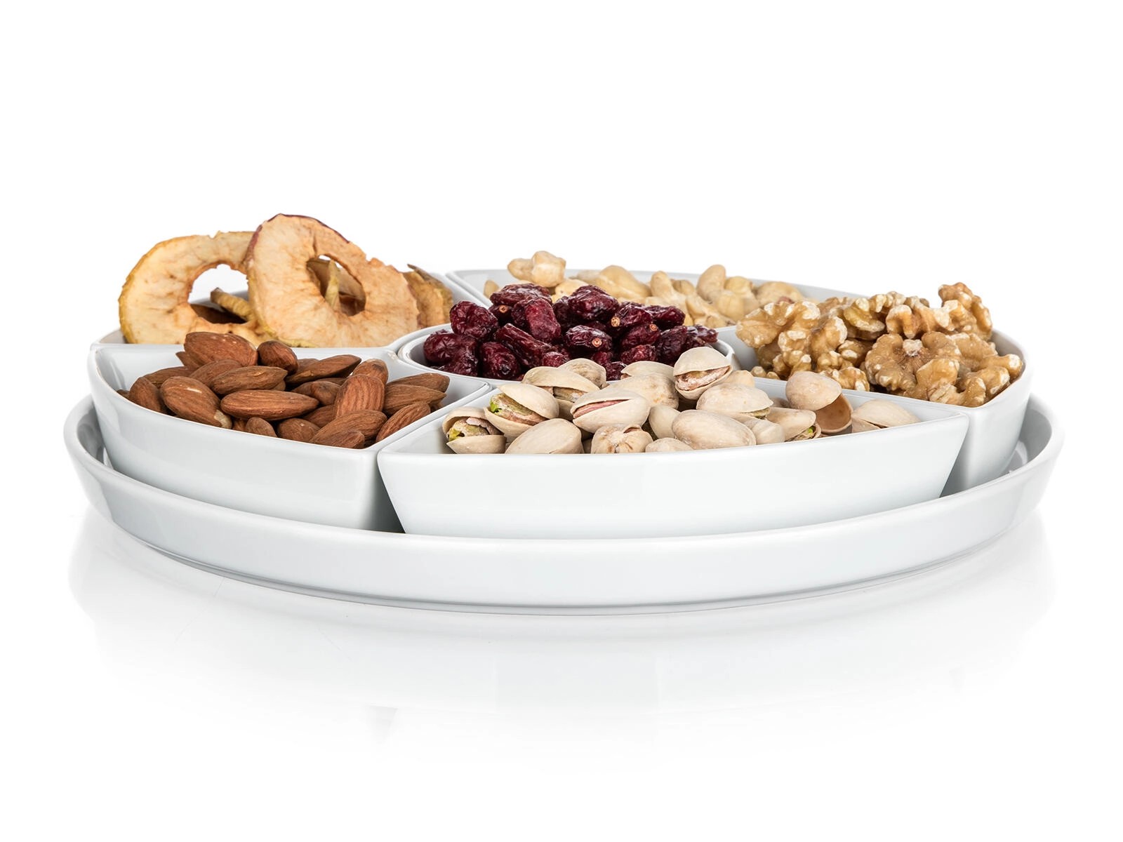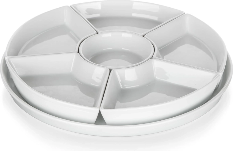Viac priehradiek umožní servírovať rôzne druhy občerstvenia súčasne – od snackov po omáčky v centrálnej miske.