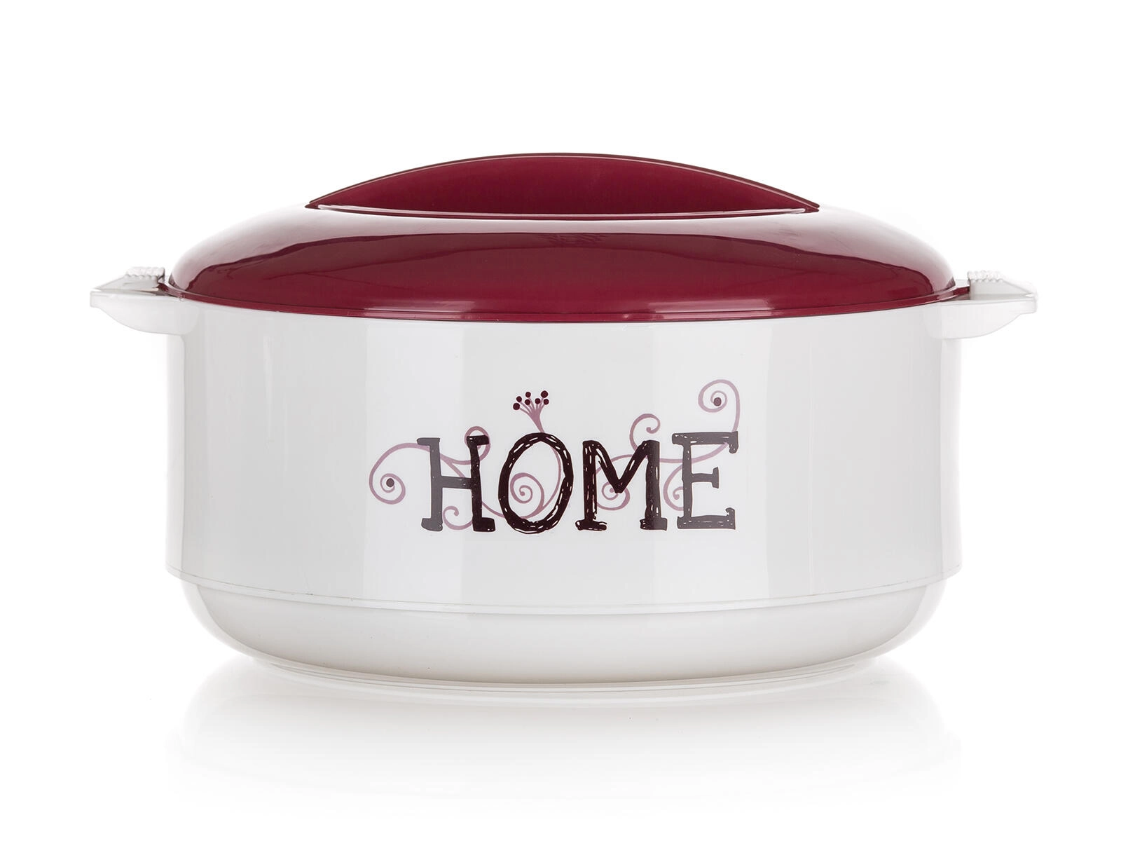 Termomisa HOME 3,5 l v elegantnej kombinácii bielej a bordó farby je navrhnutá na pohodlné uchovávanie a servírovanie teplých aj studených jedál. Vďaka nerezovej vnútornej vložke a PUR pene medzi stenami spoľahlivo udržiava teplotu a zároveň sa ľahko čistí.