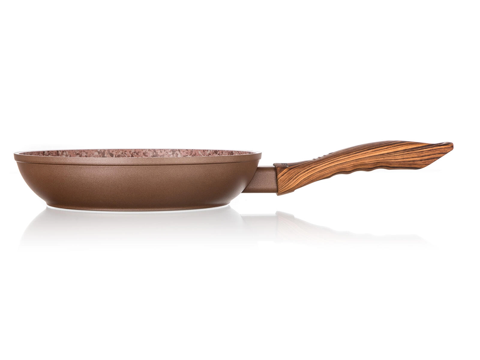 Bakelitová rukoväť v dekore dreva je príjemná na dotyk, bezpečne sa drží a uľahčuje manipuláciu pri varení.